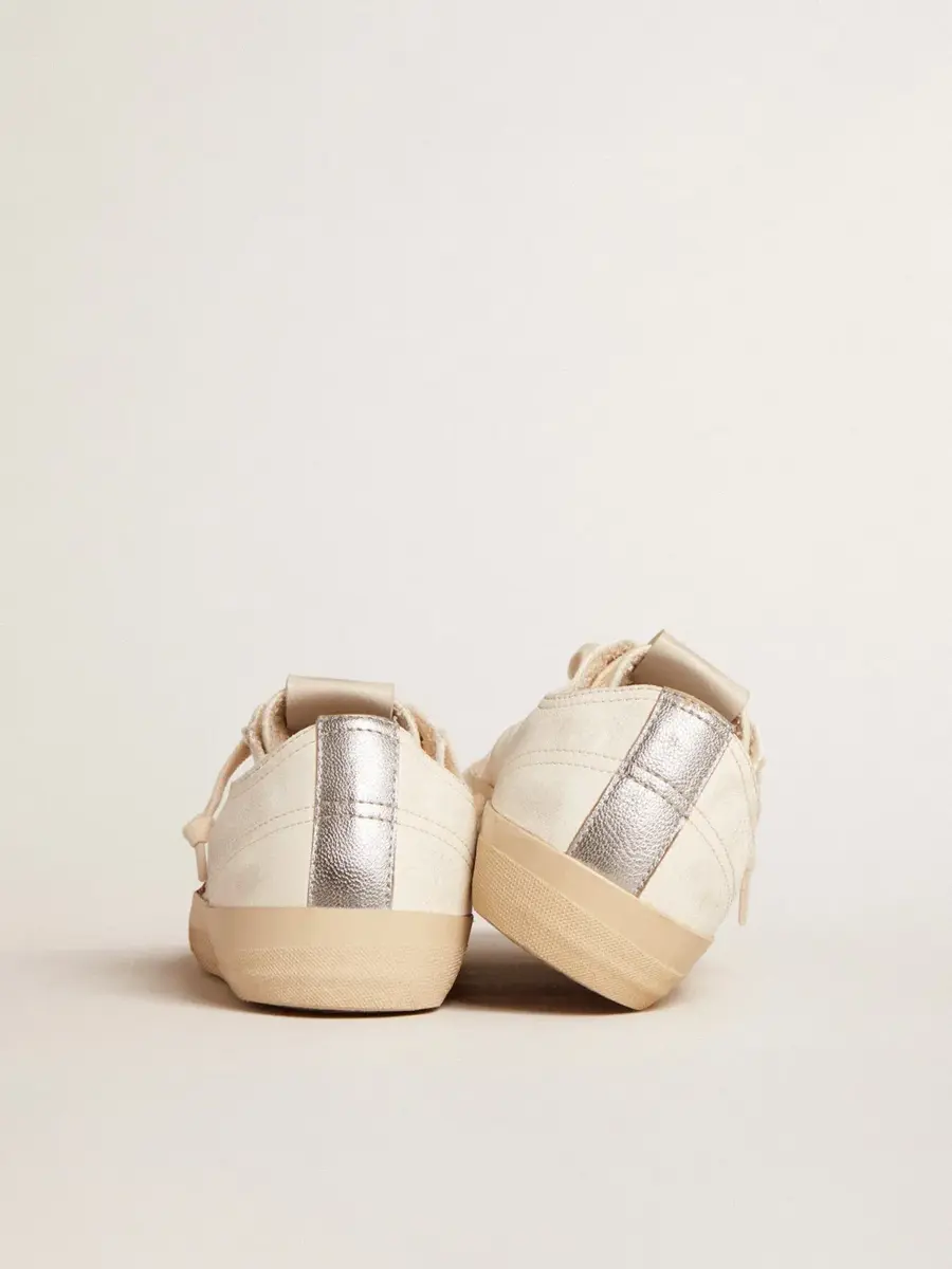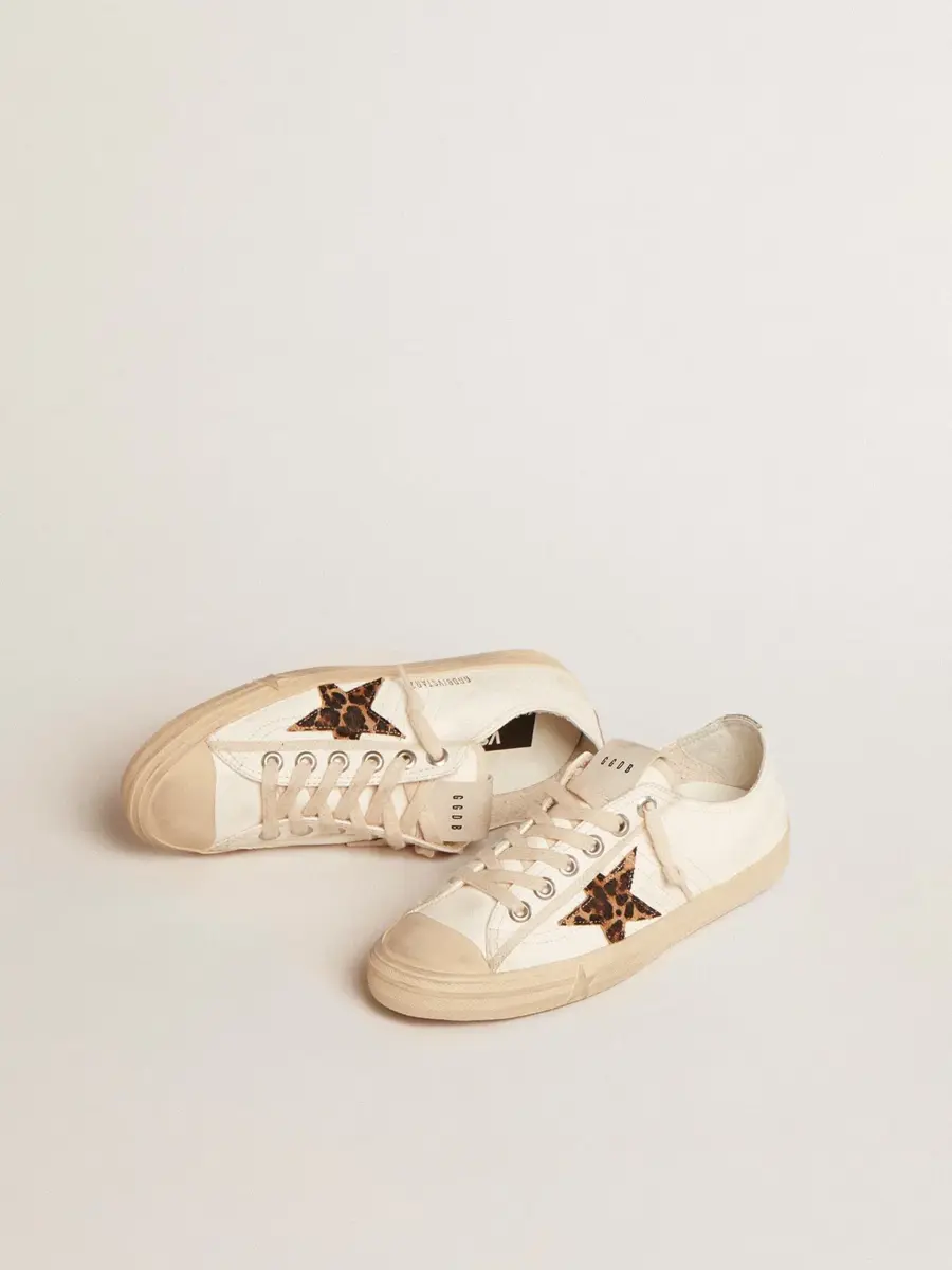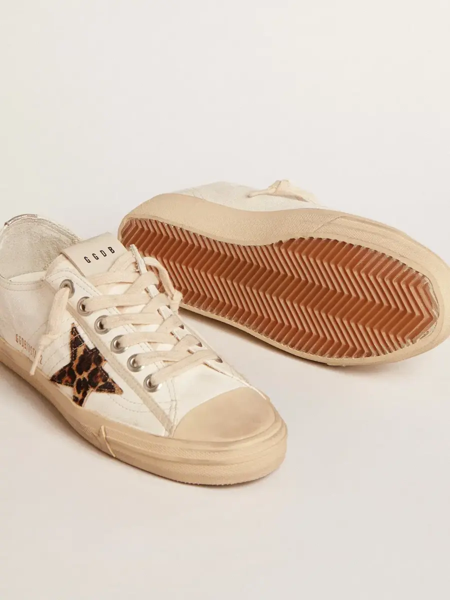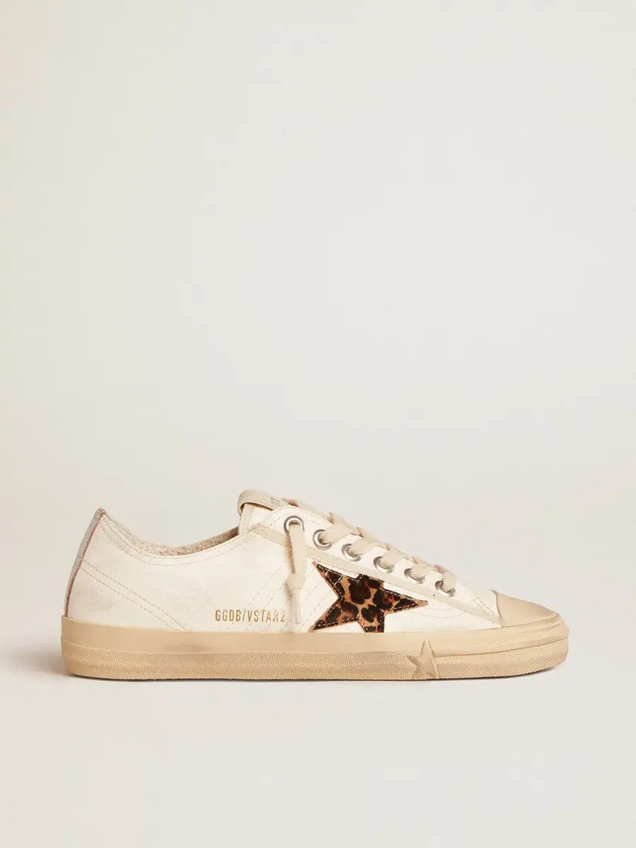La belleza reside en la simplicidad: en nuestras zapatillas V-Star, una forma esencial se combina con detalles elegantes. Este modelo LTD con parte superior de piel napa blanca presenta una estrella de piel de potro en beige y estampado de leopardo marrón. La lengüeta del talón de piel metalizada plateada y los cordones beige añaden los toques finales.