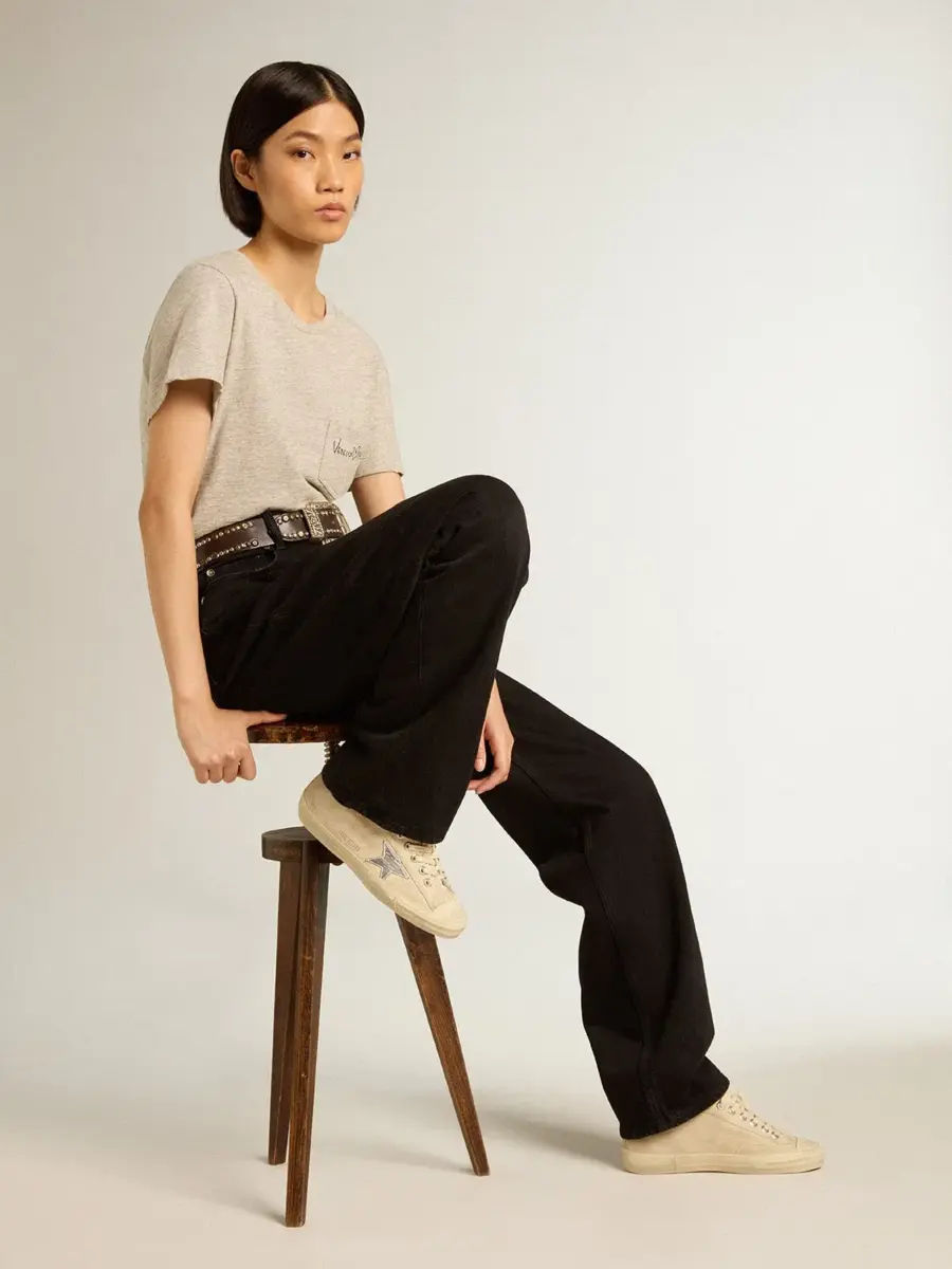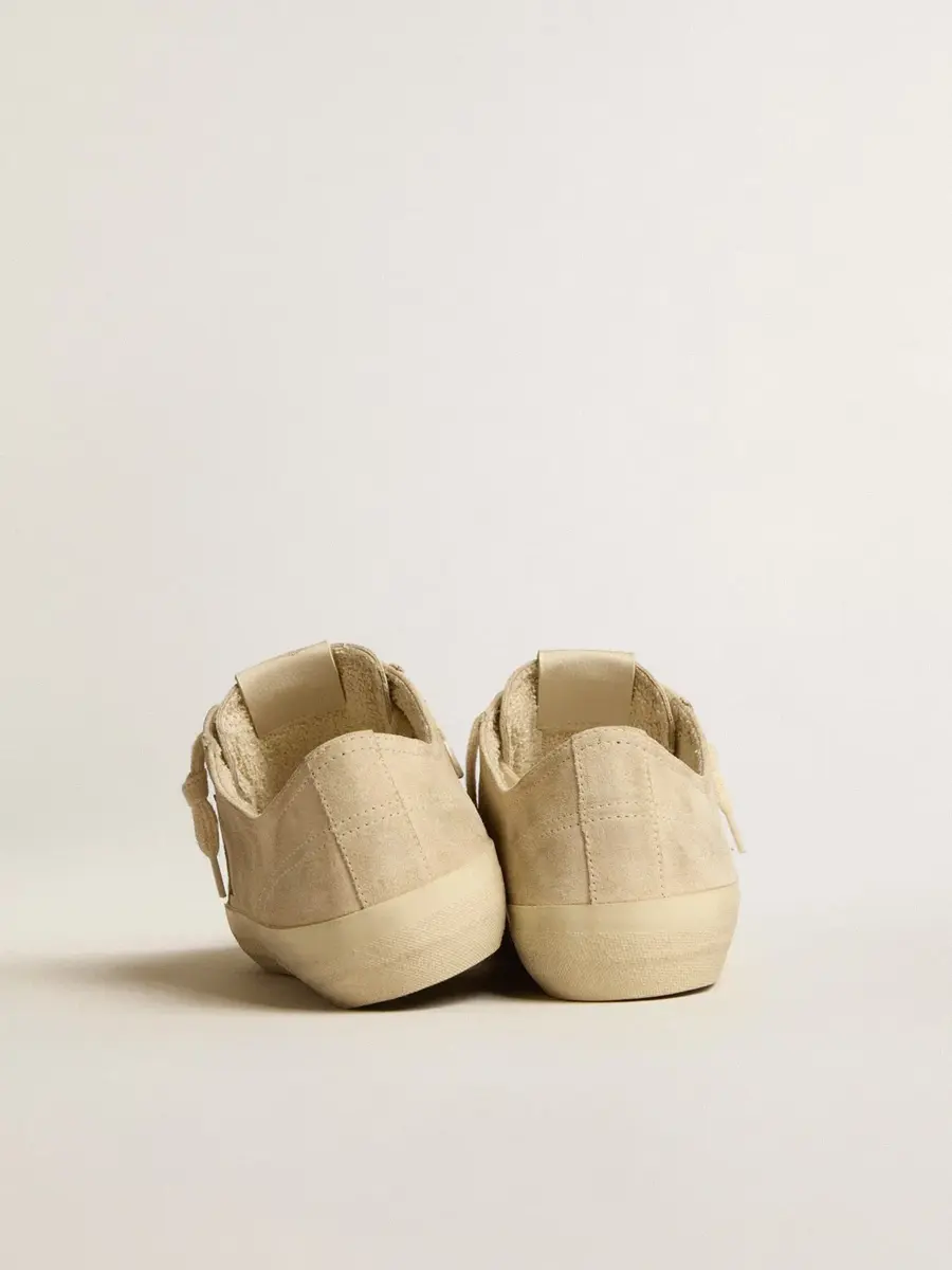 La belleza reside en la simplicidad: nuestras zapatillas V-Star combinan un diseño esencial con detalles elegantes. Este modelo para mujer presenta una parte superior de ante color perla con una estrella de cuero metalizado plateado y una lengüeta en el talón de ante color perla. Los cordones color perla añaden el toque final.