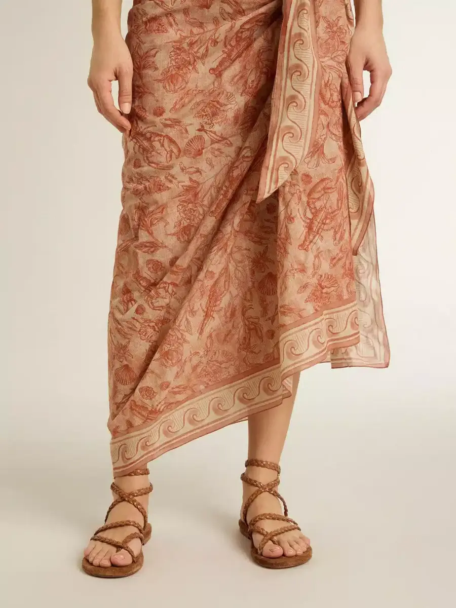 Estilo sinuoso de los años setenta: las sandalias Penelope combinan una forma lineal con un alma western. Esta versión presenta tiras trenzadas y cruzadas en piel color tabaco y un cierre con hebilla en color oro antiguo. La suela de ante color tabaco completa el look.