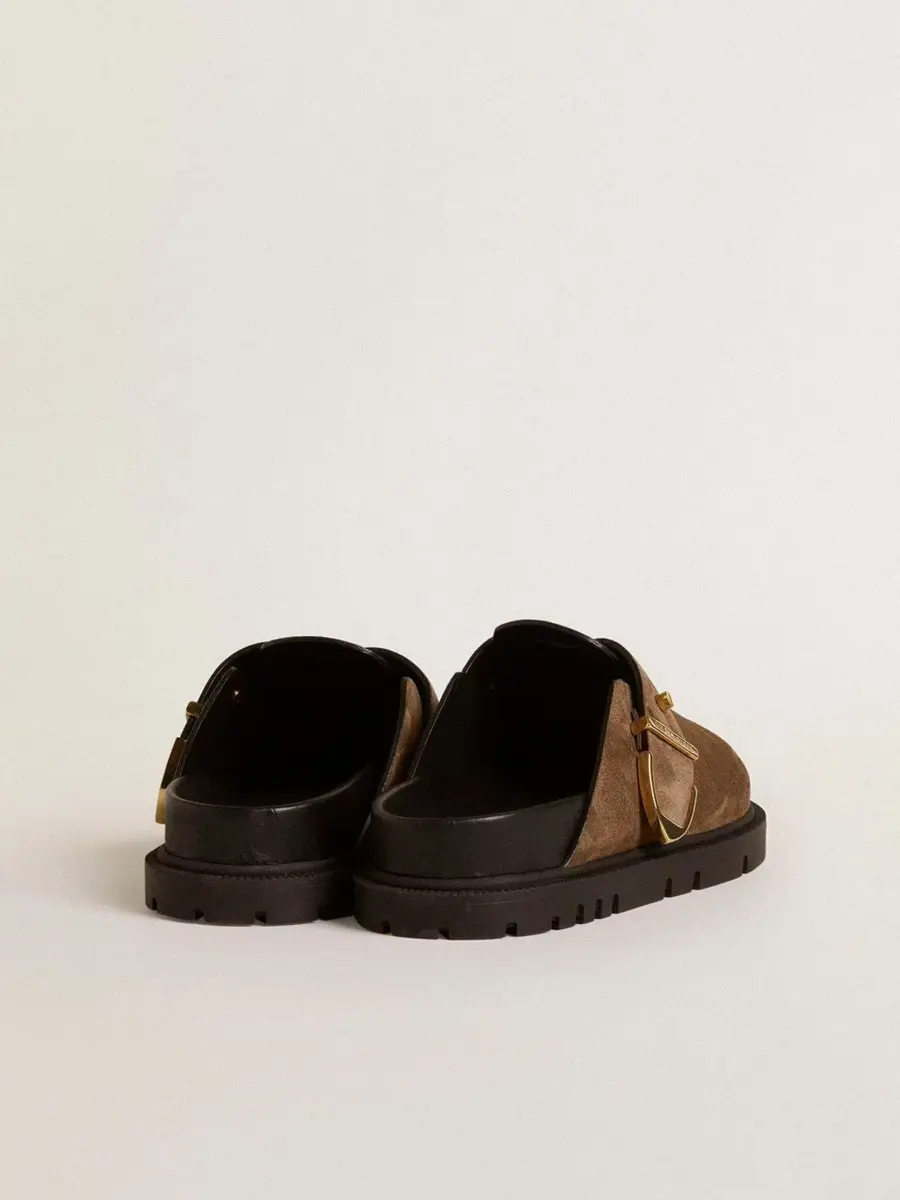 Creadas con el deseo de combinar comodidad y carácter, las sabots Lucy ofrecen una nueva versión de una silueta icónica, diseñadas para la vida cotidiana moderna. Emblema de un estilo atemporal, las Lucy realzan cada paso con su volumen atrevido y su característico detalle de logotipo grabado.Esta versión para mujer, con parte superior de ante gris paloma, presenta una suela esculpida y una correa de ante tono sobre tono con hebilla y detalles metálicos dorados.