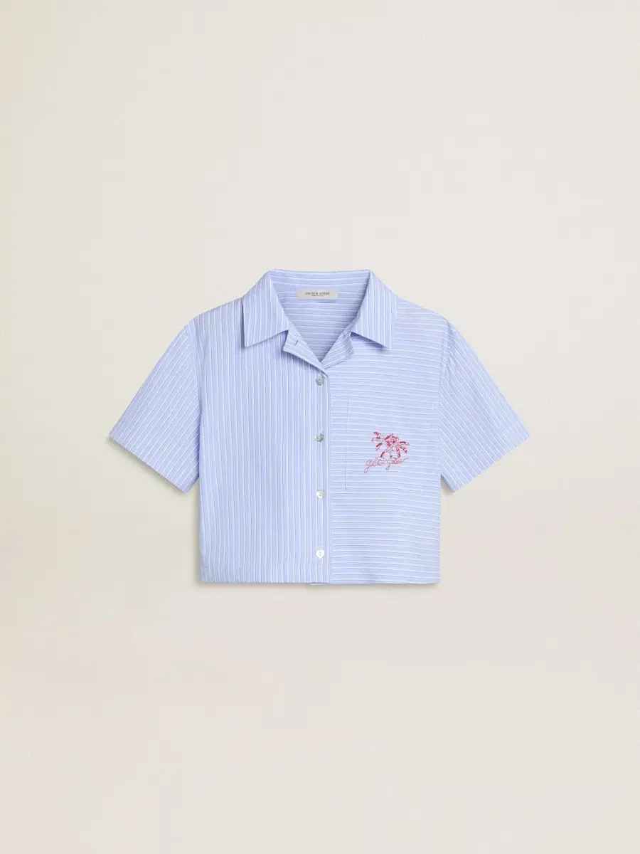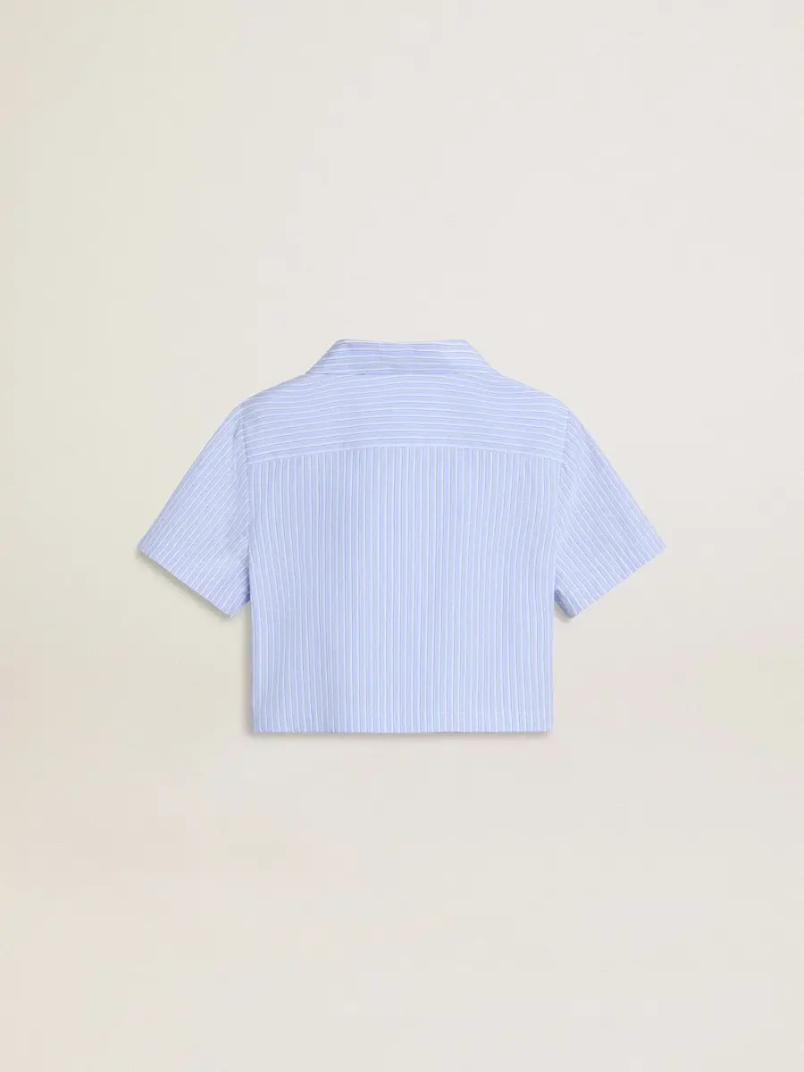 Camisa corta de niña de algodón azul claro a rayas