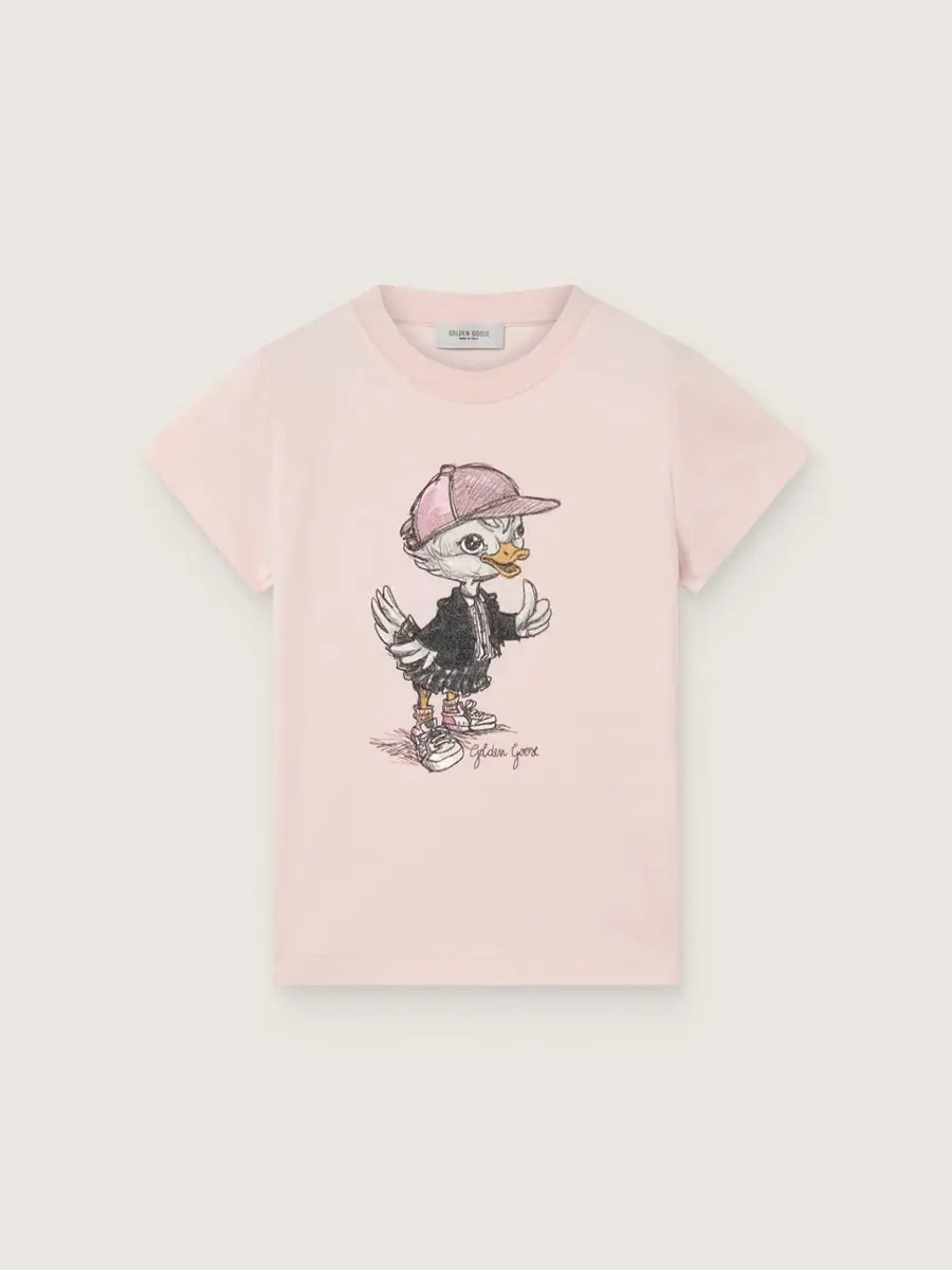 Camiseta Journey para niña en jersey de algodón rosa con estampado digital de la mascota