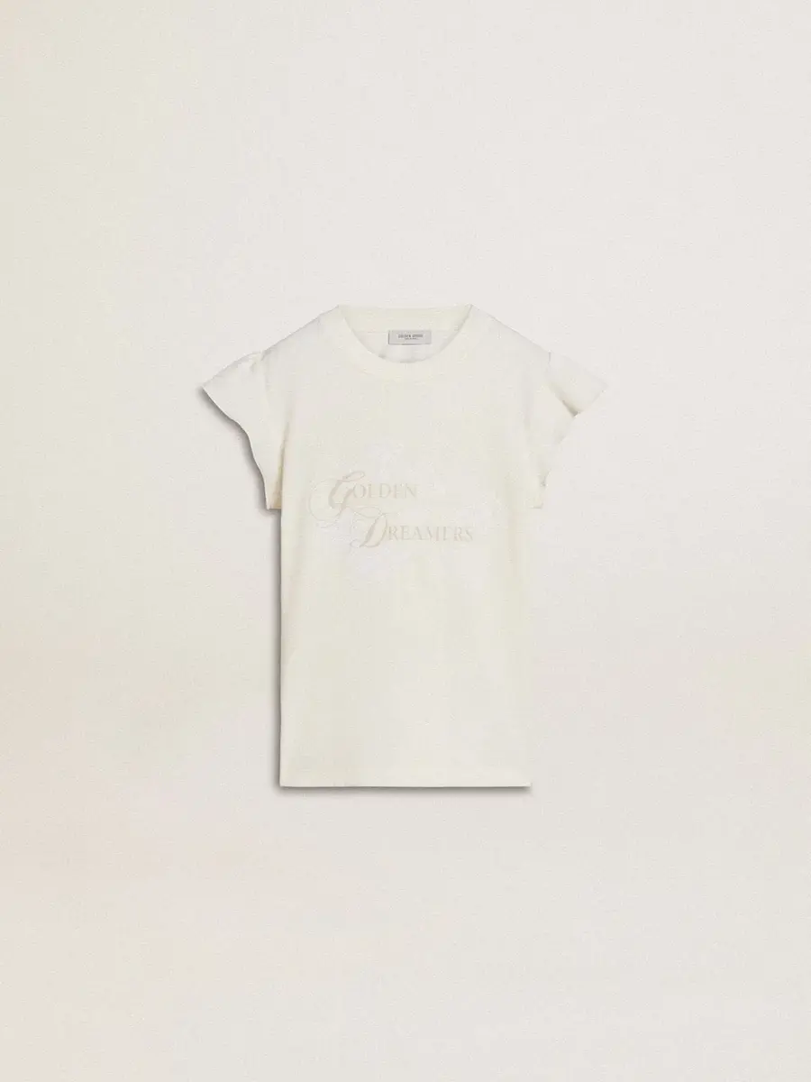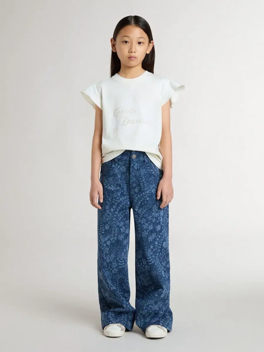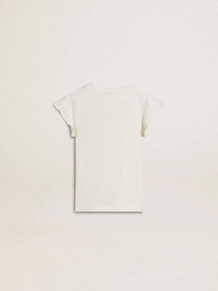 Camiseta para niña con mangas con volantes, letras y bordados