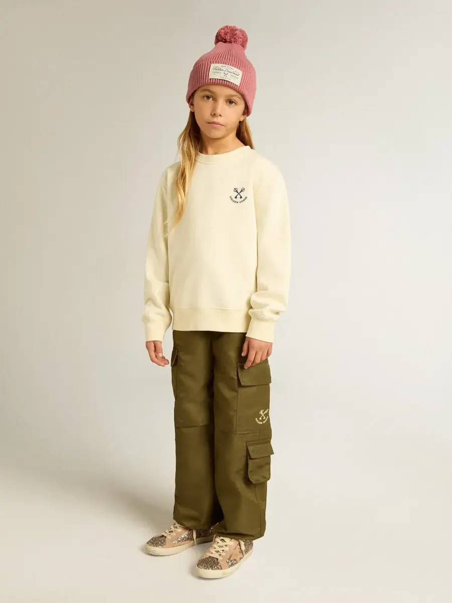 Una historia de amor a nuestra ciudad natal, Marghera. Donde todo comenzó. Nuestra última colección refleja el espíritu de nuestro lugar de origen, sus contrastes, su alma industrial y sus paisajes manufactureros, entrelazando inspiraciones tanto de la vibrante energía de la ropa de trabajo como de la refinada esencia de la sastrería tradicional. En blanco desgastado, esta camiseta de algodón de manga larga presenta un logotipo bordado en el pecho y un estampado de temporada en la espalda.