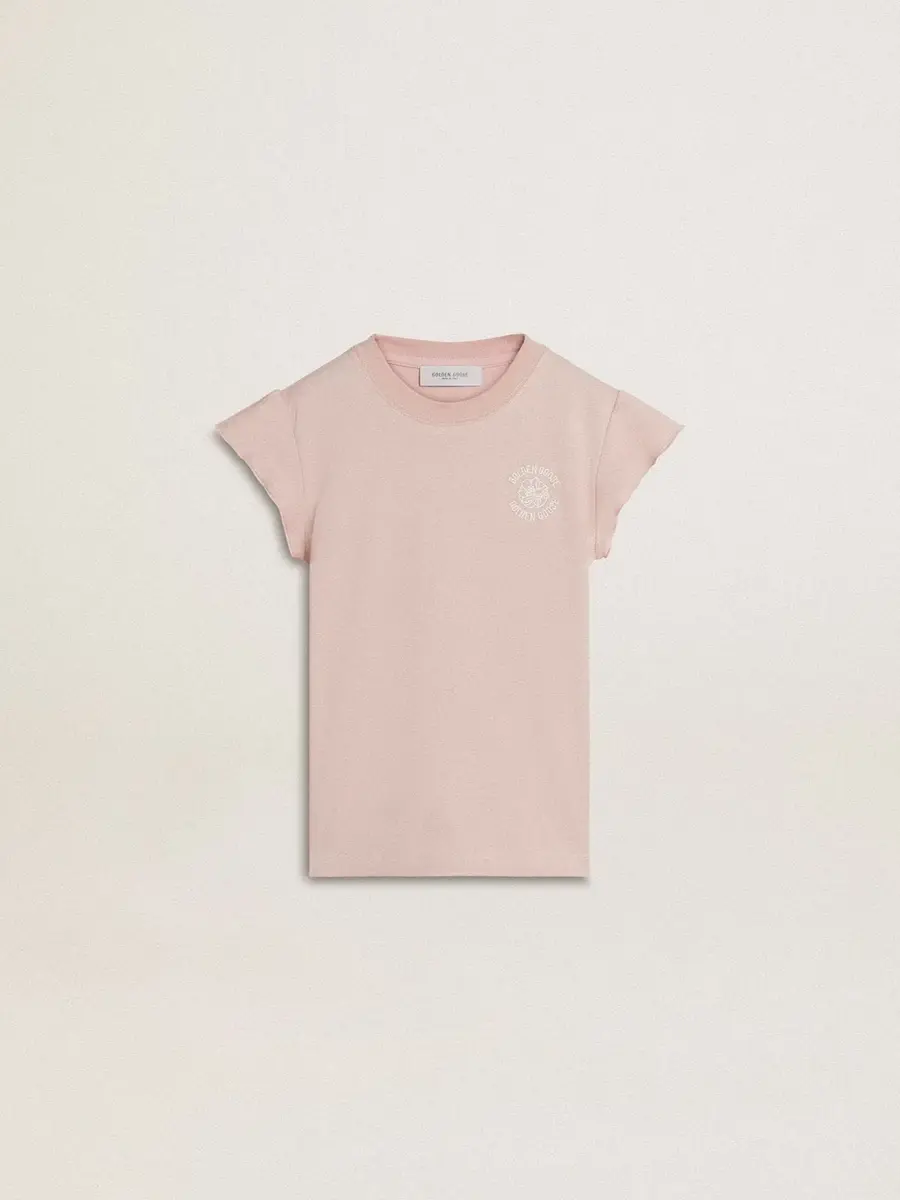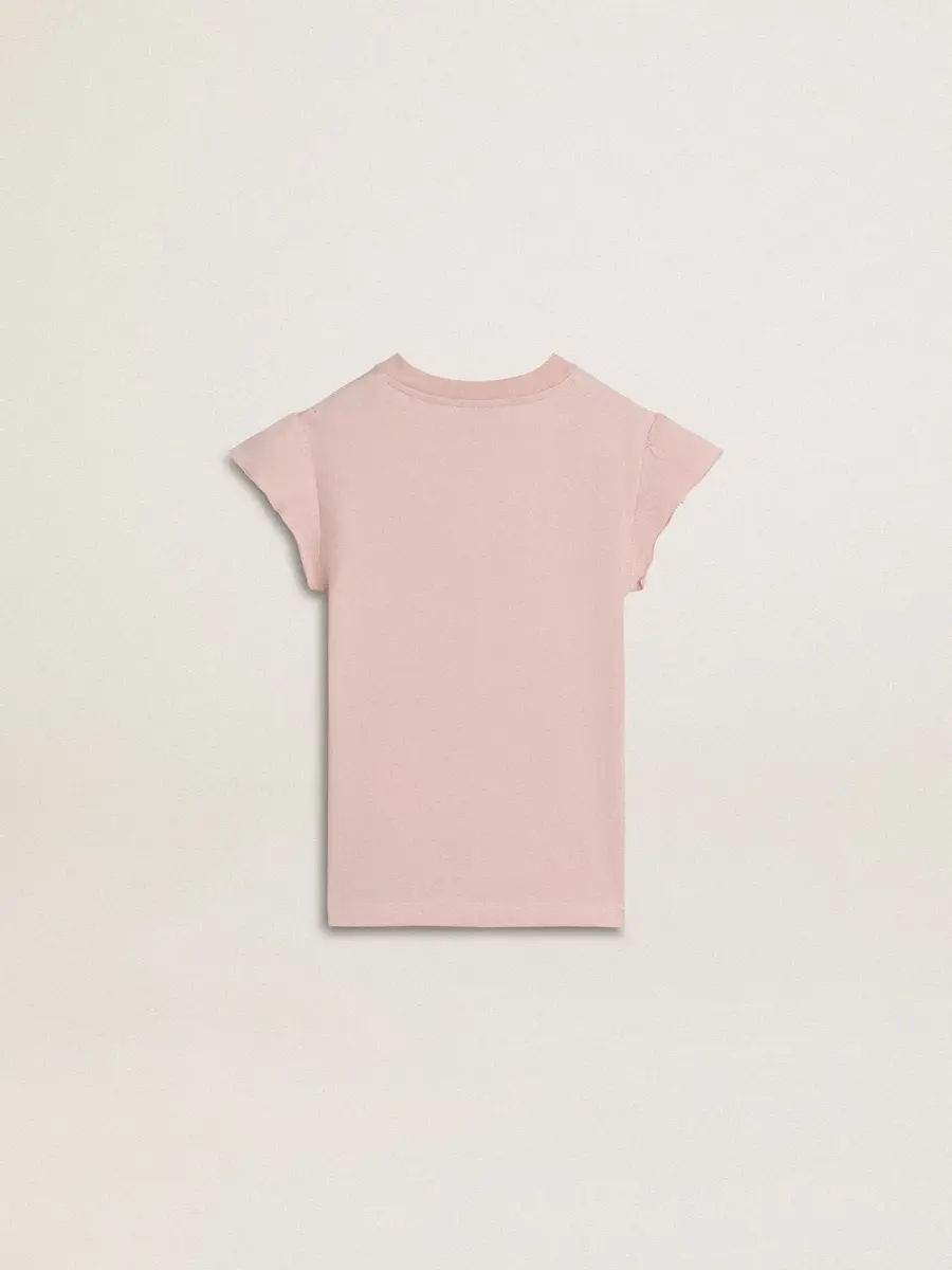 Hemos dedicado años a crear, dar forma y remodelar, sin conformarnos nunca con menos. Esta camiseta rosa para niña presenta mangas con volantes y bordados blancos en el pecho.