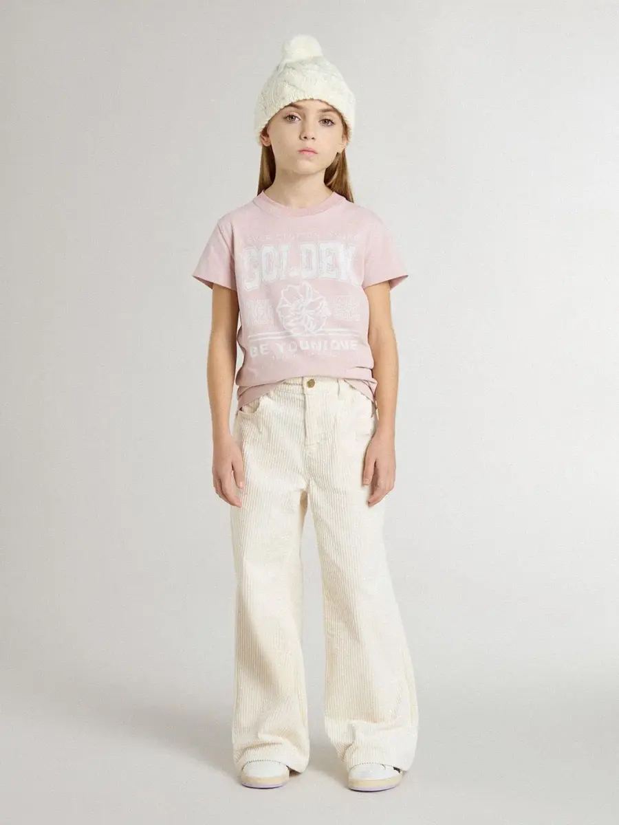 Camiseta rosa para niñas con estampado blanco