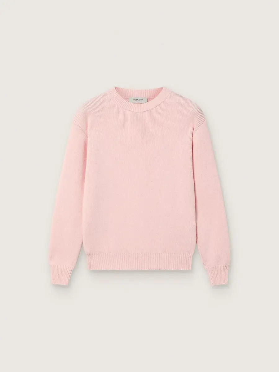 Una colección única y atemporal que encapsula el ADN de Golden Goose, diseñada para acompañarte cada día, en las buenas y en las malas, llueva o haga sol.Este jersey unisex para niños en algodón rosa presenta una textura acanalada, un corte regular y un logotipo «Golden» en color crema a contraste en la espalda.