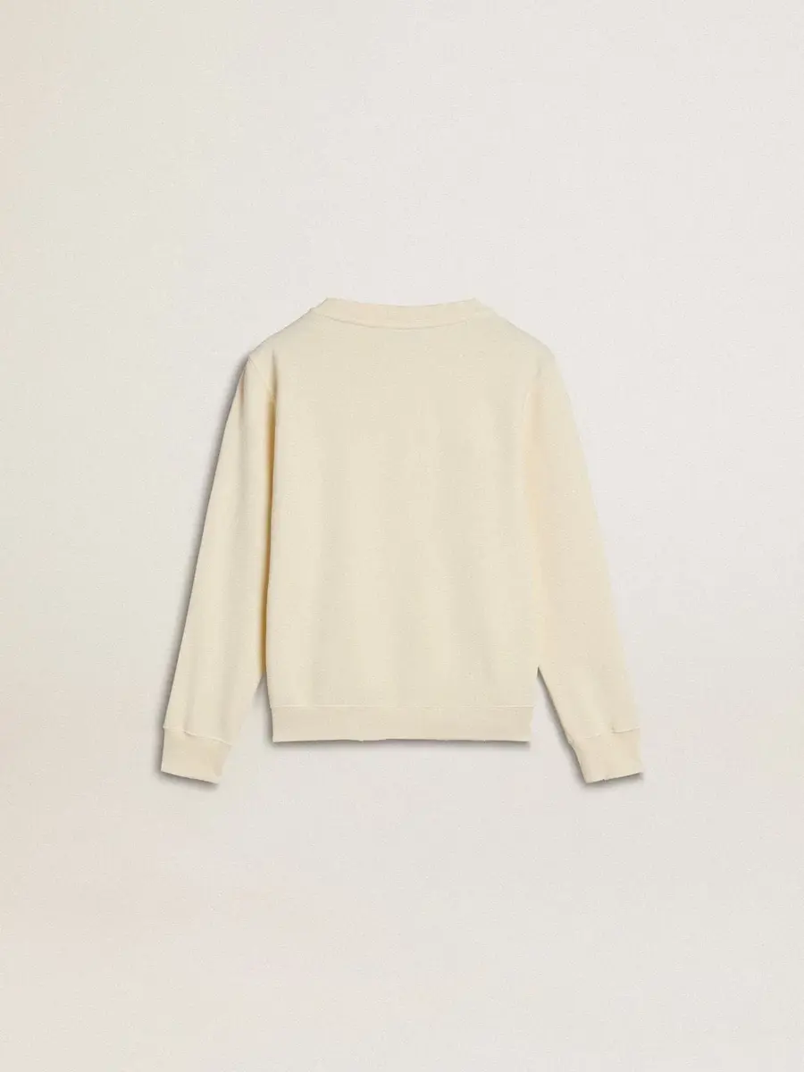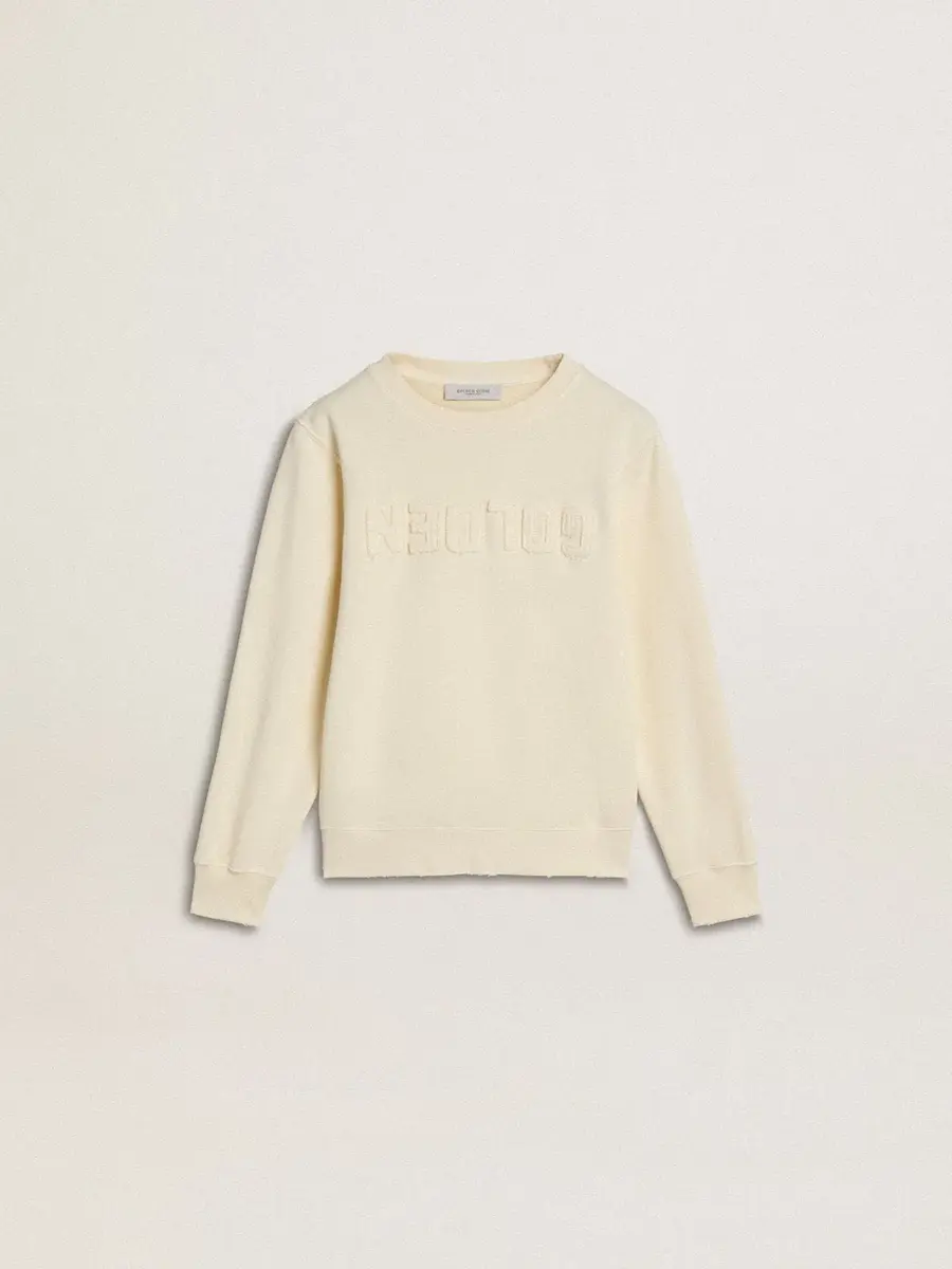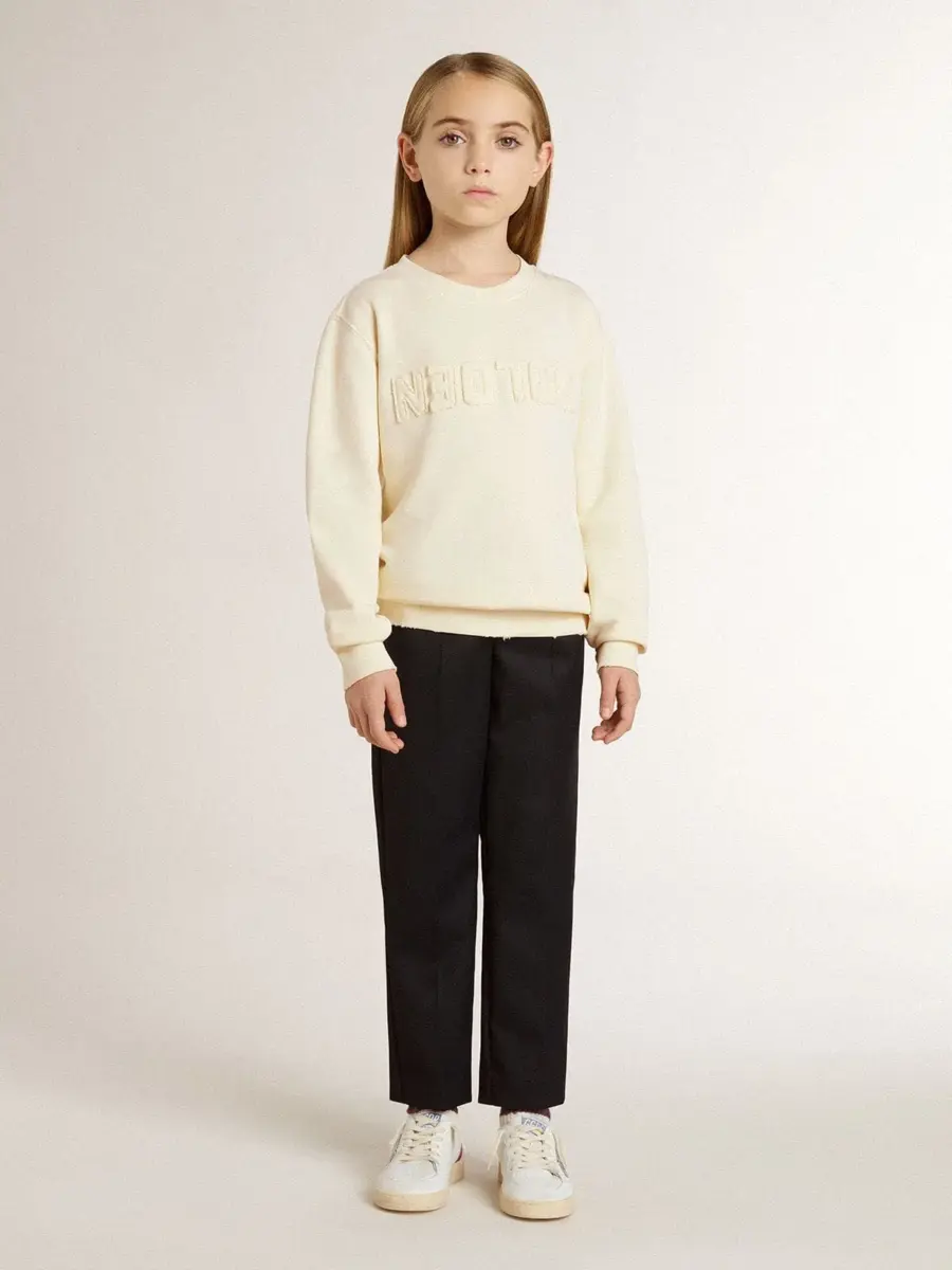 Hemos dedicado años a crear, dar forma y remodelar, sin conformarnos nunca con menos. Esta sudadera para niña de algodón color crema presenta la inscripción «Golden» con parches invertidos y detalles desgastados.