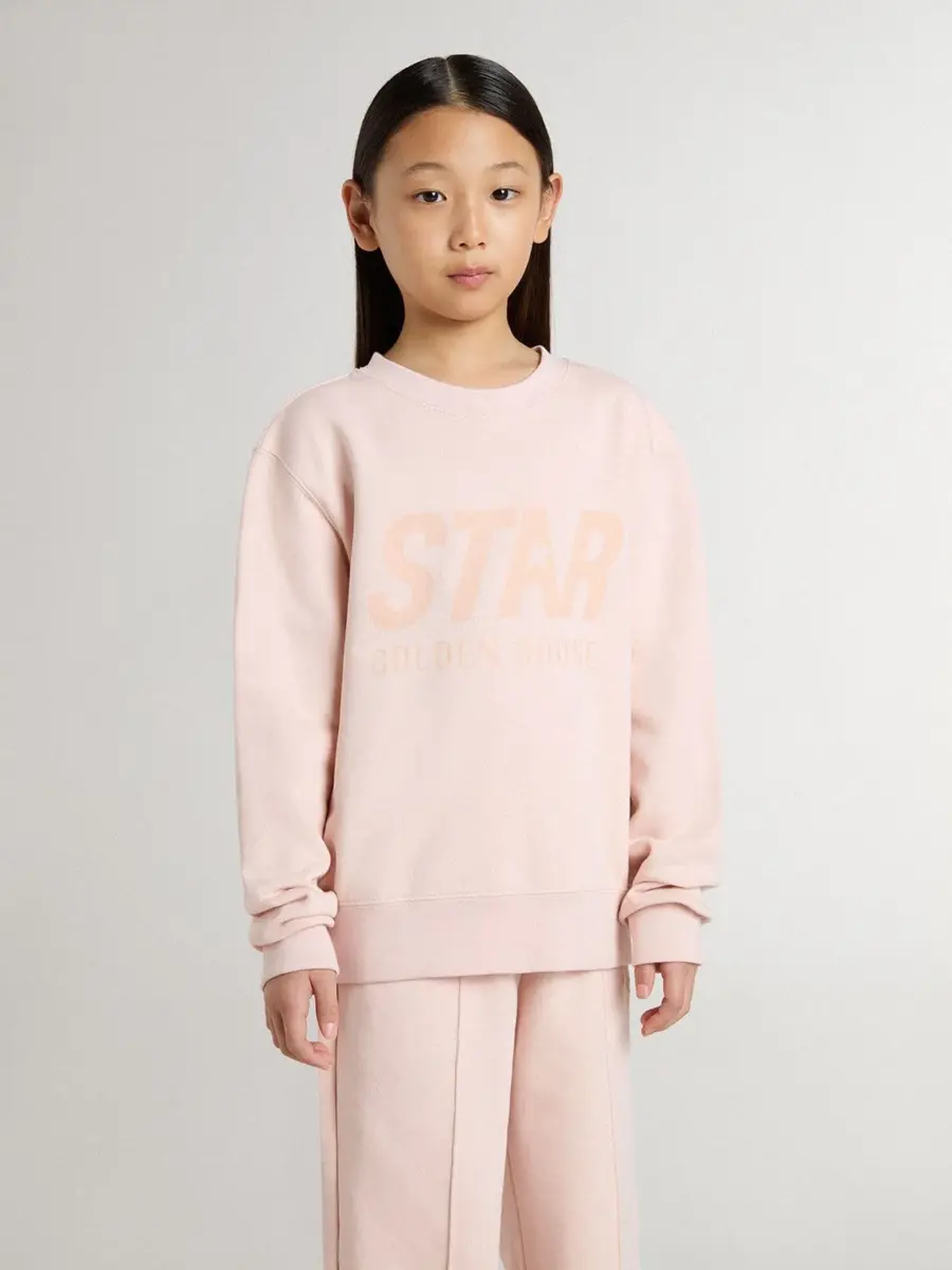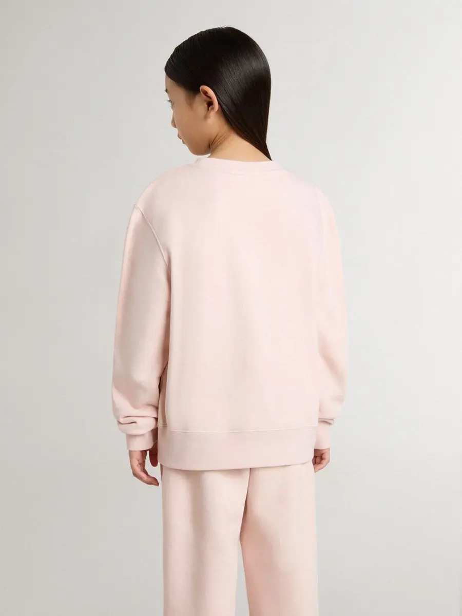 Una colección con un espíritu informal pero versátil: inspirada en los años setenta, tiene un atractivo vintage atemporal, adecuado para cualquier ocasión o look. Esta sudadera de algodón de color rosa y corte regular tiene mangas largas y letras rosas en la parte delantera.