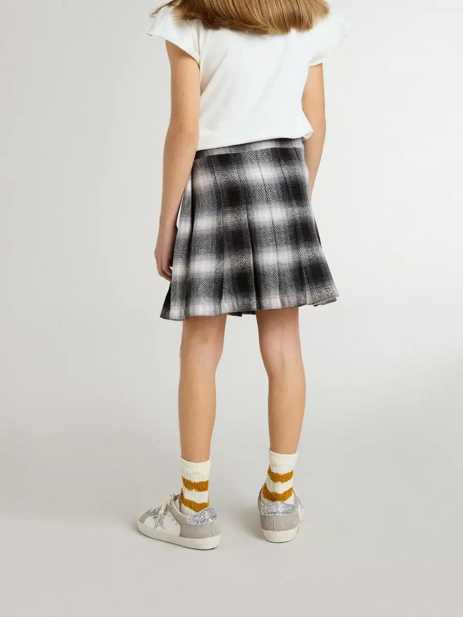 Hemos dedicado años a crear, dar forma y remodelar, sin conformarnos nunca con menos. Esta falda plisada para niña presenta un estampado a cuadros blancos y negros y el logotipo bordado en blanco en la cintura.