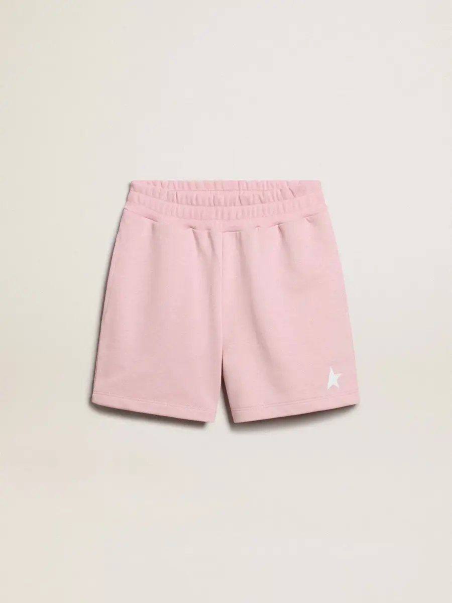 Una colección con un espíritu informal pero versátil: inspirada en los años setenta, tiene un atractivo vintage atemporal, adecuado para cualquier ocasión o look. Estos pantalones cortos de algodón puro en color rosa presentan una estrella blanca en la parte delantera, dos bolsillos laterales y un bolsillo trasero.