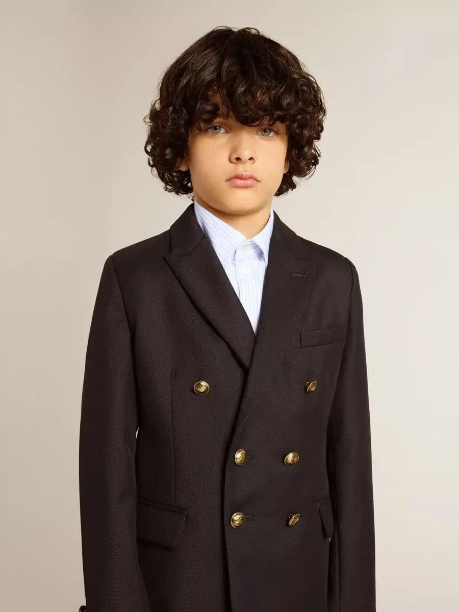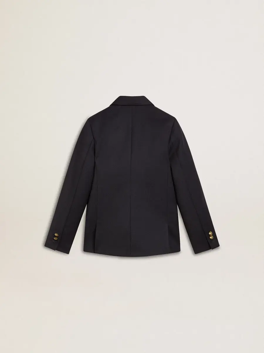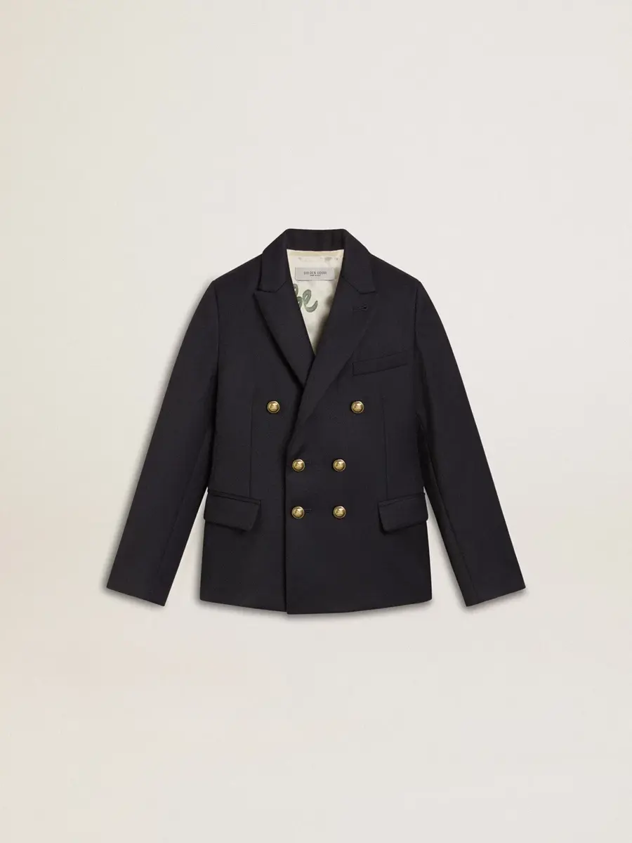 Una colección única y atemporal que encapsula el ADN de Golden Goose, diseñada para acompañarte cada día, en las buenas y en las malas, llueva o haga sol. Esta chaqueta cruzada de corte regular para niño en azul oscuro cuenta con un cierre con botones dorados y un forro interior estampado.