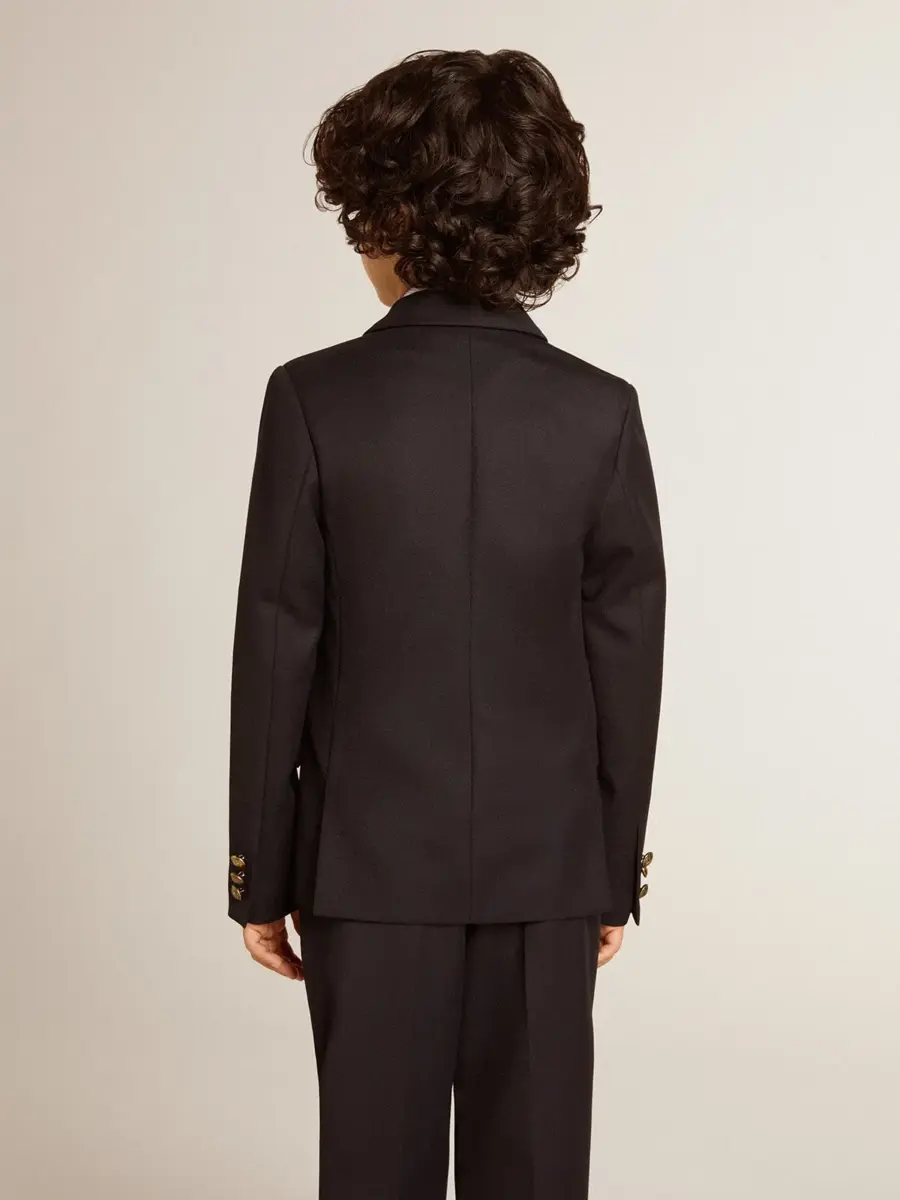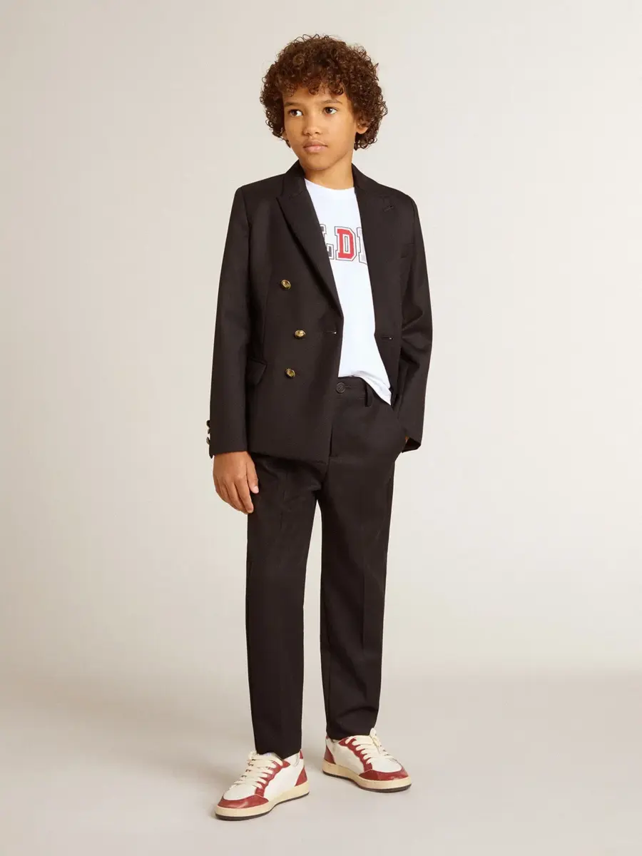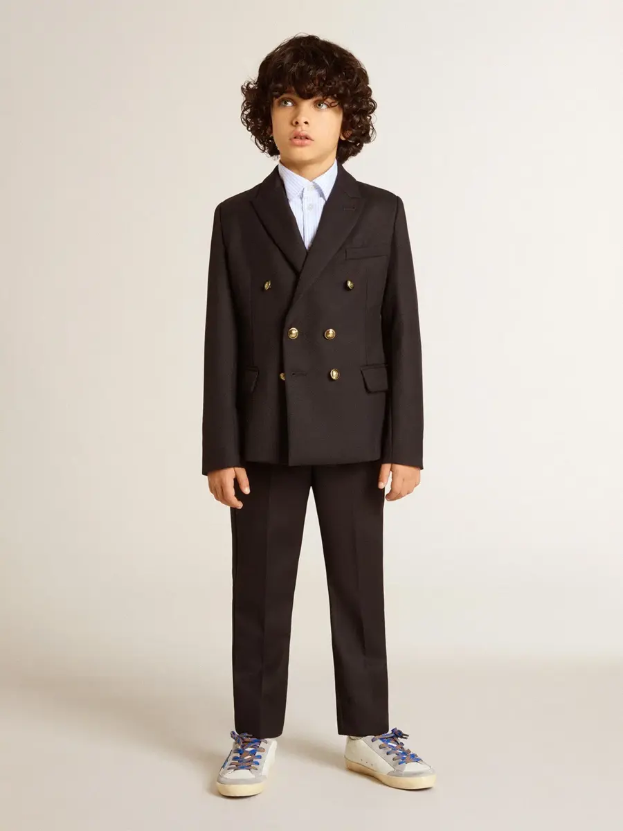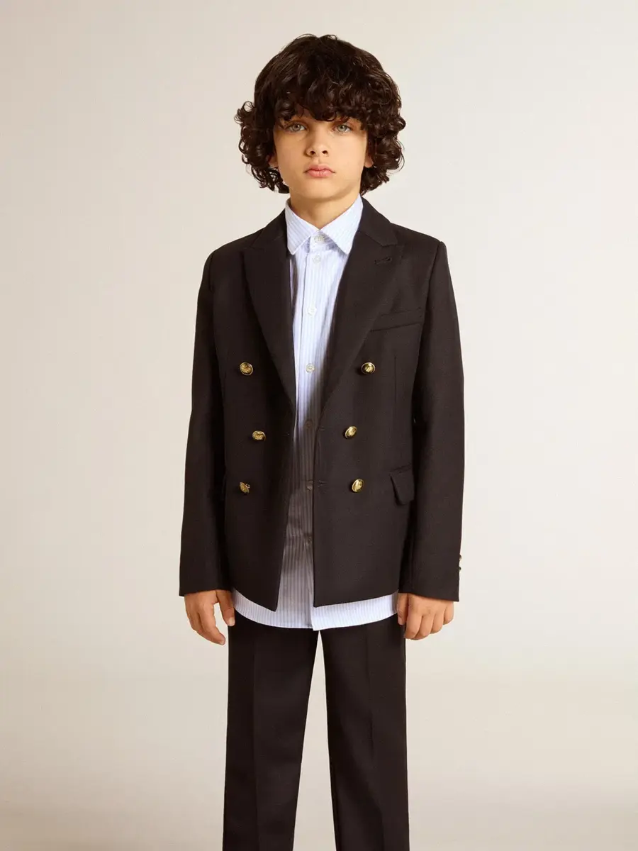 Una colección única y atemporal que encapsula el ADN de Golden Goose, diseñada para acompañarte cada día, en las buenas y en las malas, llueva o haga sol. Esta chaqueta cruzada de corte regular para niño en azul oscuro cuenta con un cierre con botones dorados y un forro interior estampado.
