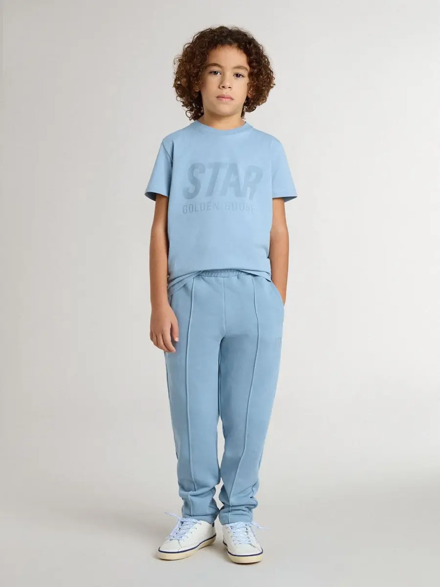 Una colección con un espíritu informal pero versátil: inspirada en los años setenta, tiene un atractivo vintage atemporal, adecuado para cualquier ocasión o look. Esta camiseta azul claro de algodón para niño presenta un estampado «Star», también en azul.