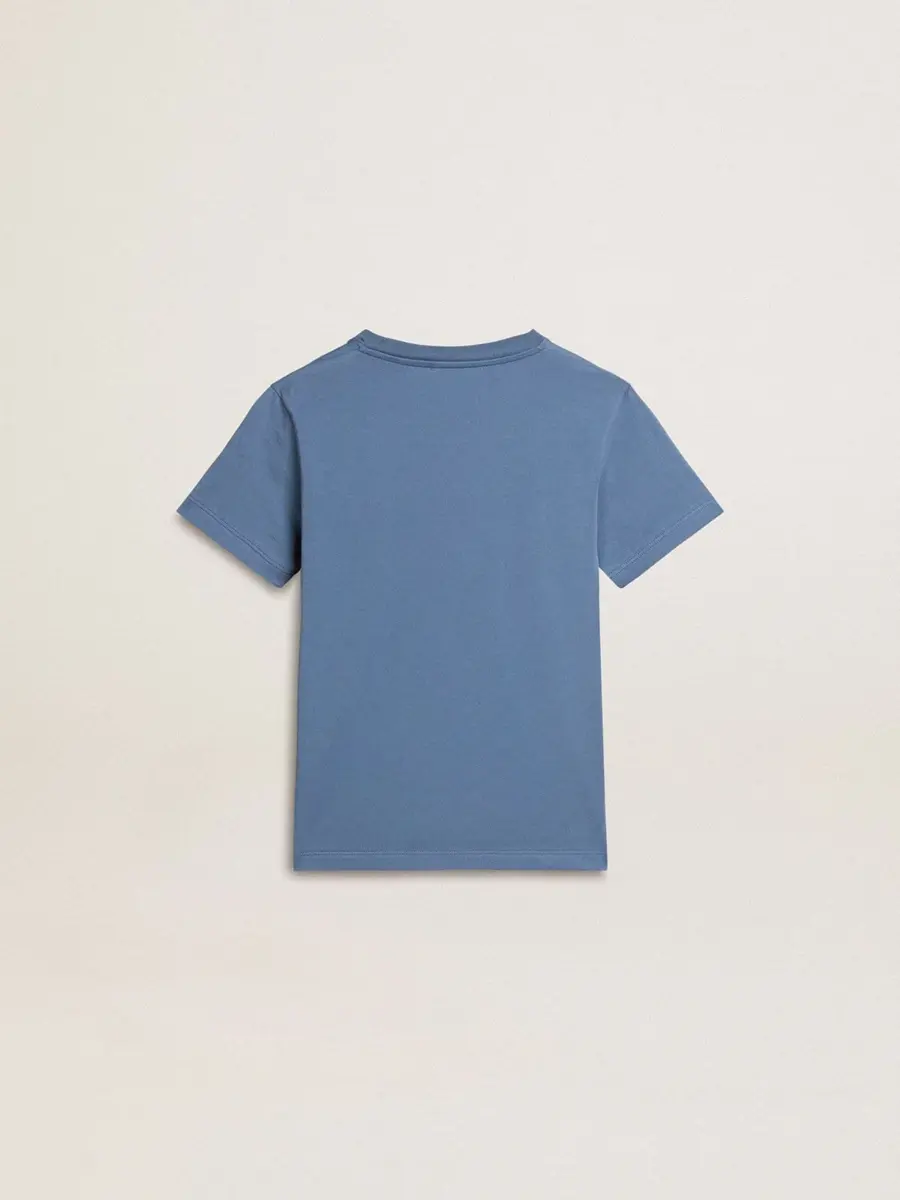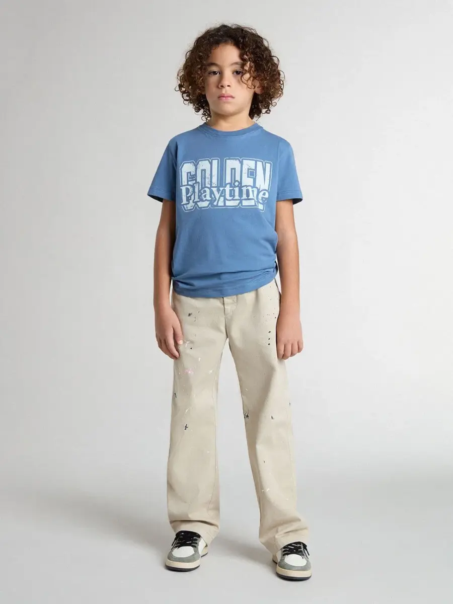 Hemos dedicado años a crear, dar forma y remodelar, sin conformarnos nunca con menos. Esta camiseta azul claro de algodón para niño presenta letras estampadas en blanco con efecto vintage.