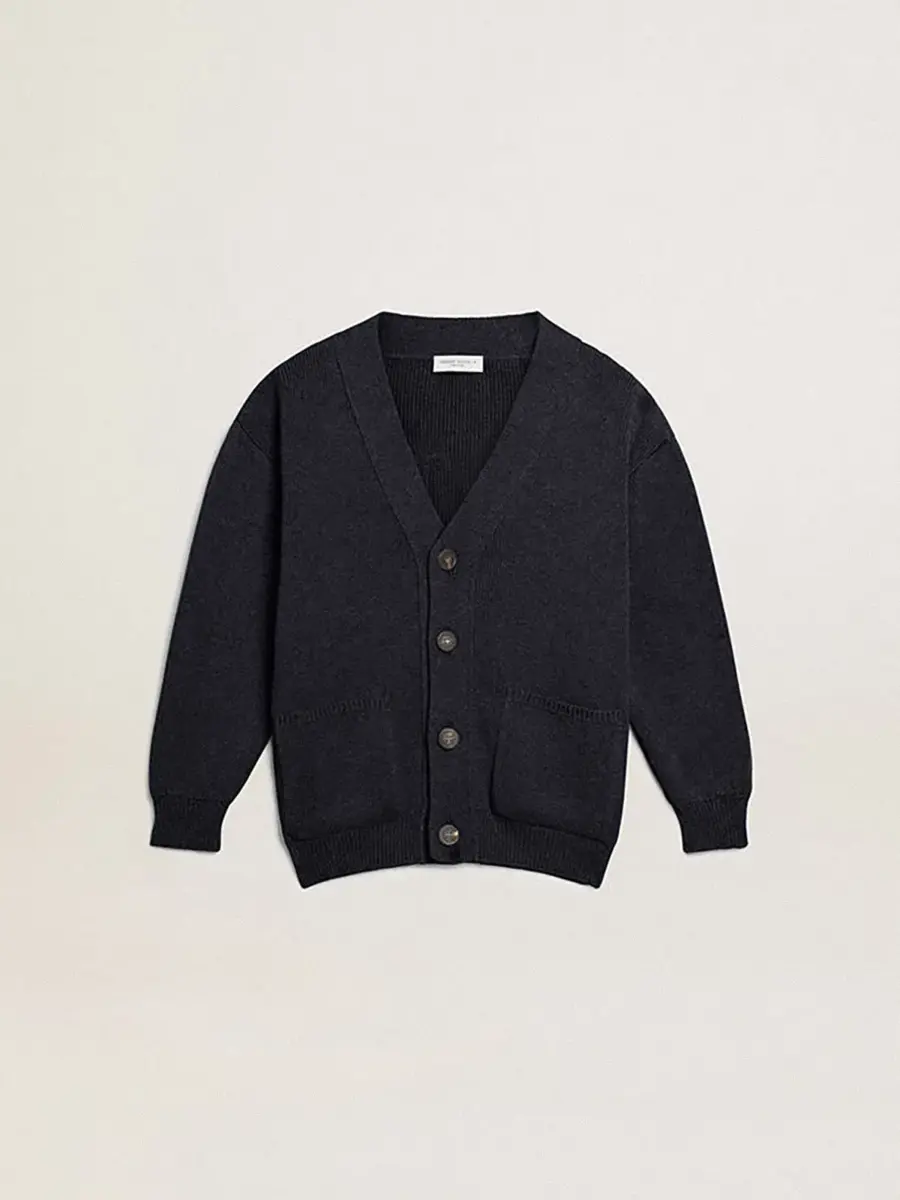 Una colección única y atemporal que encapsula el ADN de Golden Goose, diseñada para acompañarte cada día, en las buenas y en las malas, llueva o haga sol. Este cárdigan de corte regular para niño, confeccionado en algodón azul oscuro, presenta un logotipo blanco en la espalda.