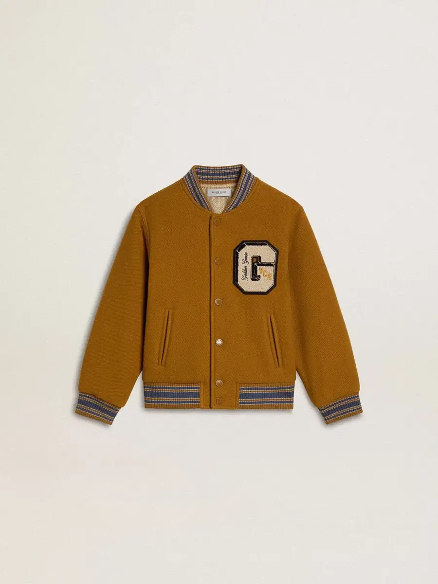 Hemos dedicado años a crear, dar forma y remodelar, sin conformarnos nunca con menos. Confeccionada en lana amarillo ocre, esta chaqueta bomber unisex con acabado desgastado presenta un parche bordado con hilo en la parte delantera, puños y dobladillo acanalados azules y cierre con botones a presión. Dos bolsillos delanteros le dan el toque final.