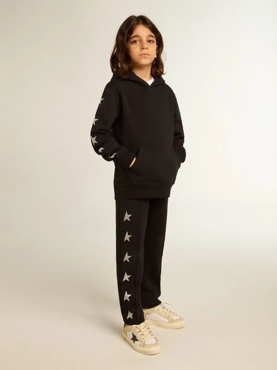 Sudadera con capucha para niño en color negro con estrellas plateadas en contraste
