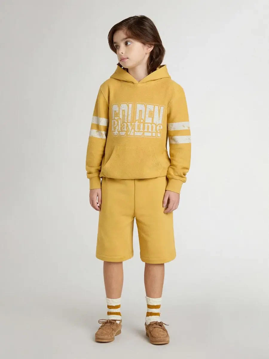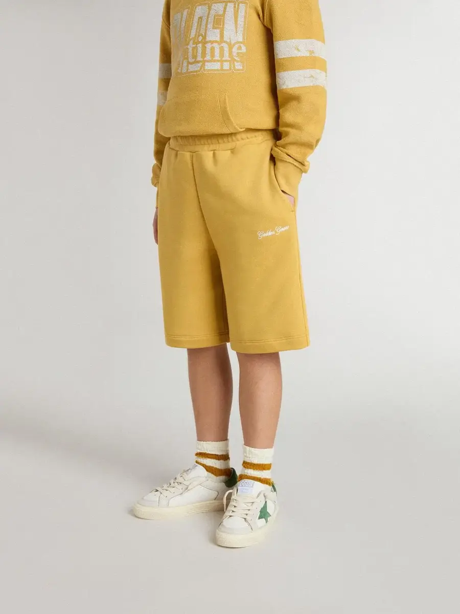 Hemos dedicado años a crear, dar forma y remodelar, sin conformarnos nunca con menos. Estos cómodos pantalones cortos de jogging, confeccionados en una mezcla de algodón amarillo ocre, presentan un corte holgado y un logotipo bordado en blanco. El bolsillo trasero y la cintura elástica añaden el toque final.