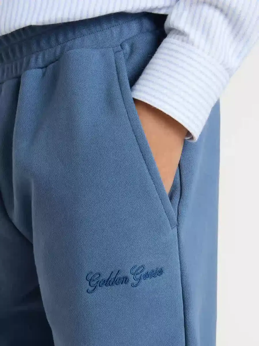Una colección con un espíritu informal pero versátil: inspirada en los años setenta, tiene un atractivo vintage atemporal, adecuado para cualquier ocasión o look. Estos pantalones de chándal unisex cuentan con un bordado azul con el logotipo y tres bolsillos. La cintura elástica le da el toque final.