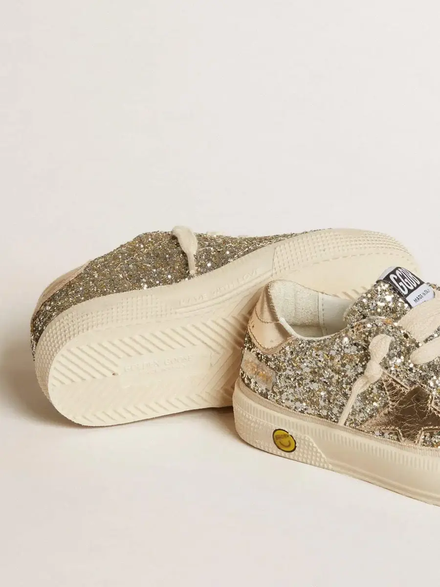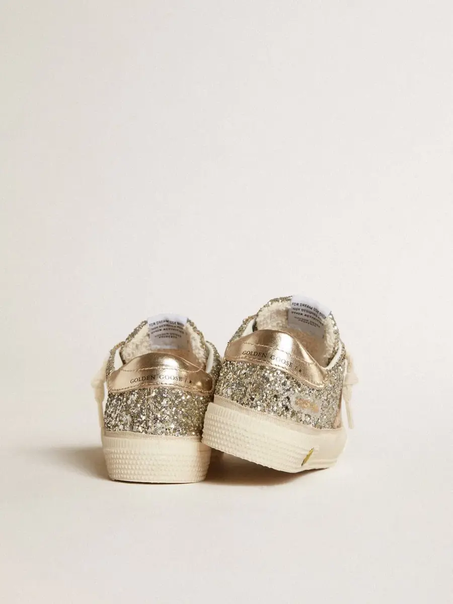 May Teen en brillo platino con estrella y lengüeta del talón en piel dorada
