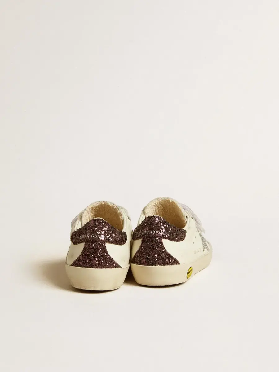 Old School Young con estrella plateada brillante y lengüeta brillante en el talón