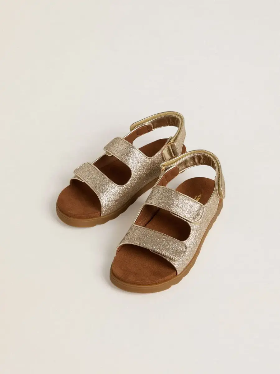 Diseñadas para proporcionar sujeción y libertad en cada movimiento, las sandalias Noa combinan un ajuste seguro con un toque deportivo. El equilibrio perfecto entre practicidad y estilo que acompaña sin esfuerzo a los más pequeños durante todo el día. Esta versión Junior en piel platino y microglitter cuenta con cierre de velcro y suela de goma antideslizante, diseñada para garantizar comodidad y estabilidad en cada paso.