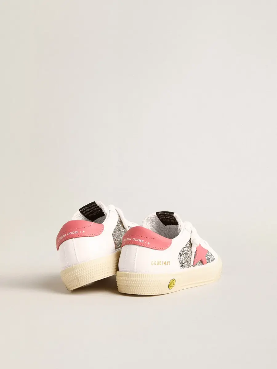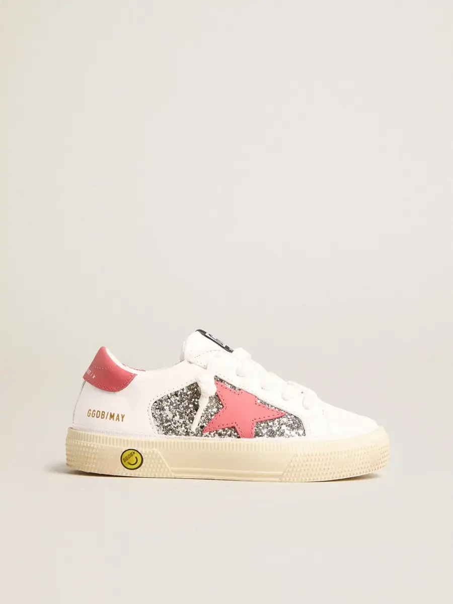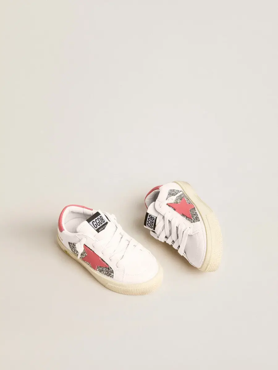 La inspiración de los años setenta y el estilo vintage se unen a la artesanía típica de nuestras zapatillas. Esta versión Teen de nuestras zapatillas May presenta una parte superior de piel blanca con estrella de piel roja y lengüeta perforada de piel roja en el talón. El detalle sonriente en el ribete y el detalle brillante bajo la estrella completan el look.