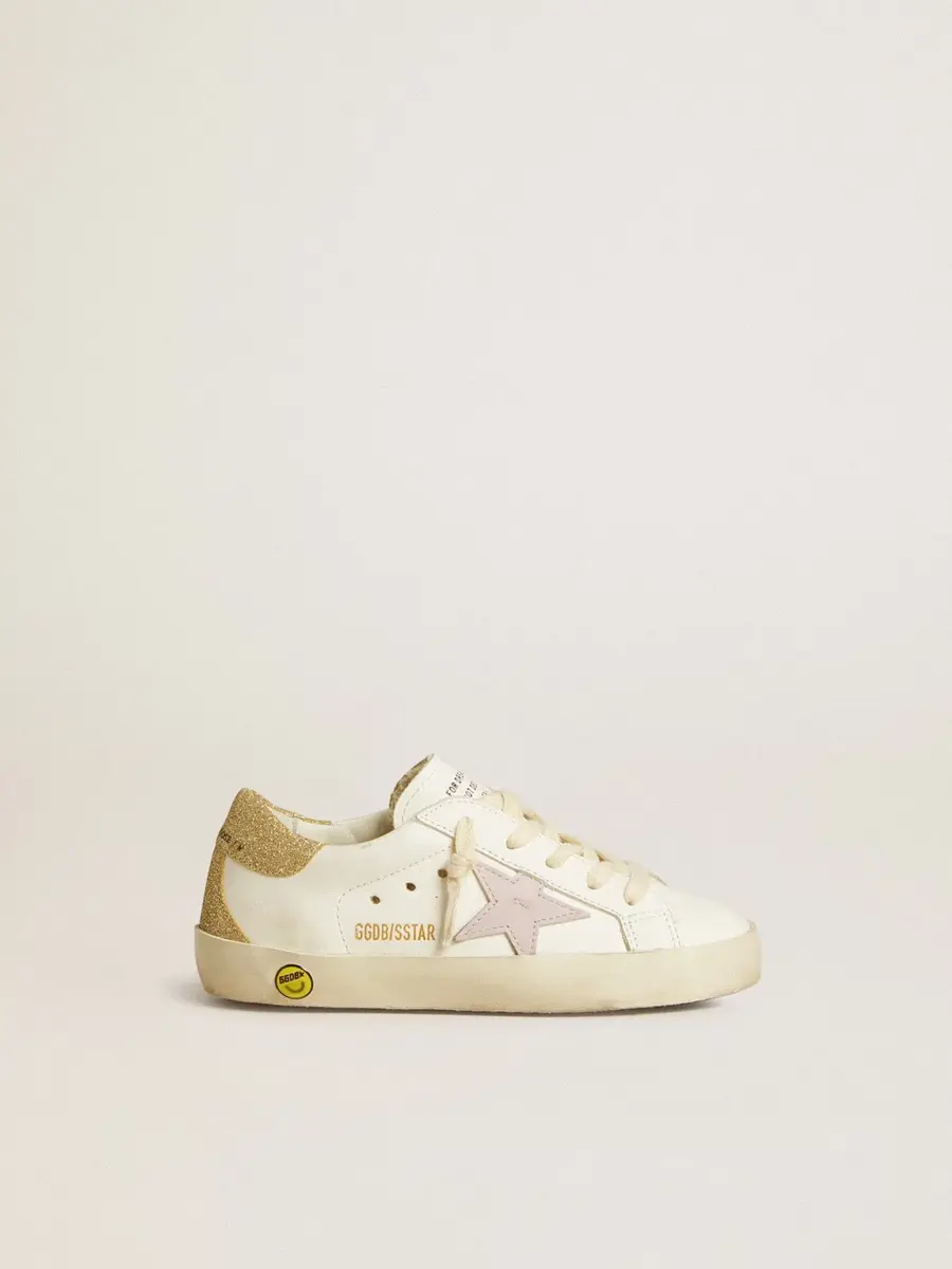 Un icono atemporal, pero en constante evolución. En Golden, nos encanta tomar nuestros clásicos y reelaborarlos constantemente, siempre desde un nuevo ángulo. Con una parte superior de cuero blanco, la versión Junior de estas Super-Star cuenta con una estrella de cuero lila y una lengüeta con purpurina platino en el talón y una inserción en la parte trasera. El detalle sonriente en el ribete y los cordones de color crema añaden el toque final.