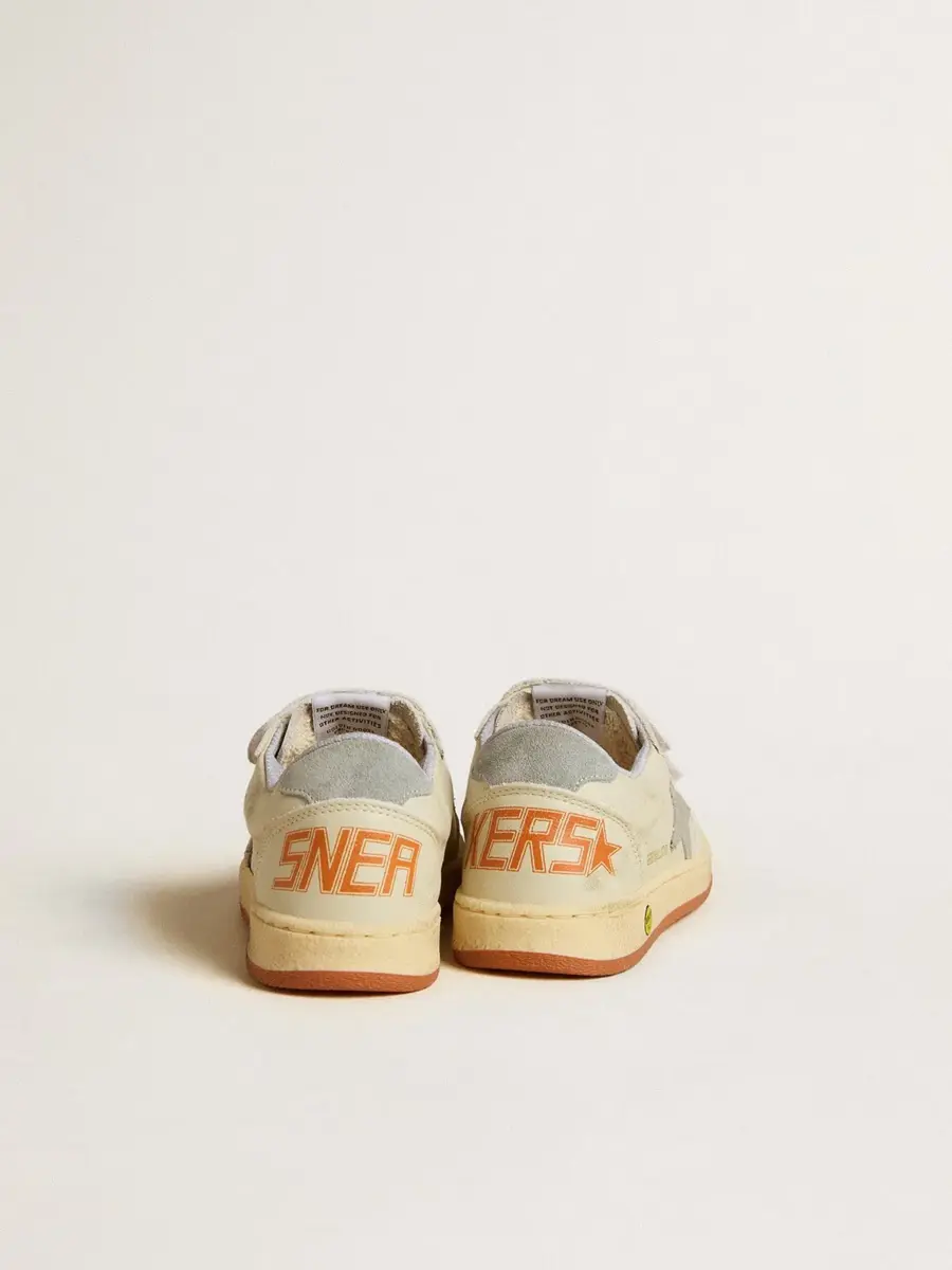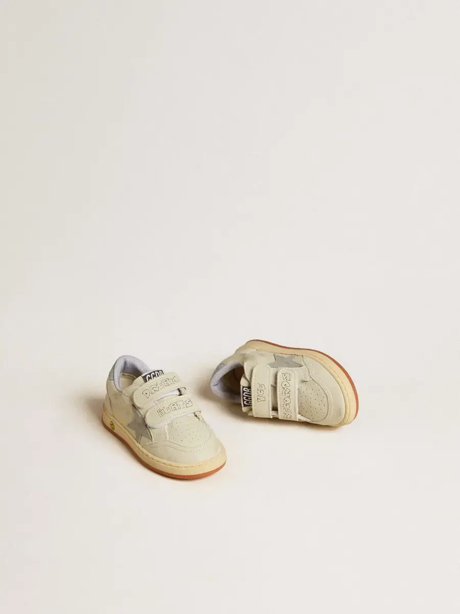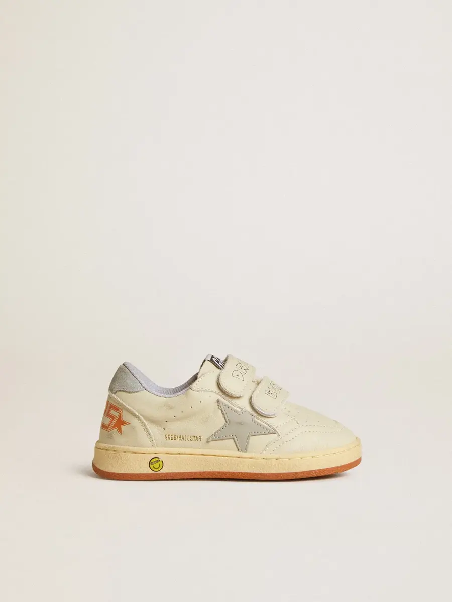 Soñando con los años ochenta. Nuestras zapatillas Ball Star tienen un aire universitario americano, a medio camino entre el baloncesto y el skate. Con una parte superior de piel en color blanco roto, la versión Teen de este modelo cuenta con una estrella de piel azul claro y una lengüeta en el talón de ante azul claro. La cara sonriente en el ribete y el cierre de velcro de piel en color blanco roto con las letras «VCE Records» y «Dream Beats» en negro a contraste añaden el toque final: cosas bonitas que nunca pasan de moda.