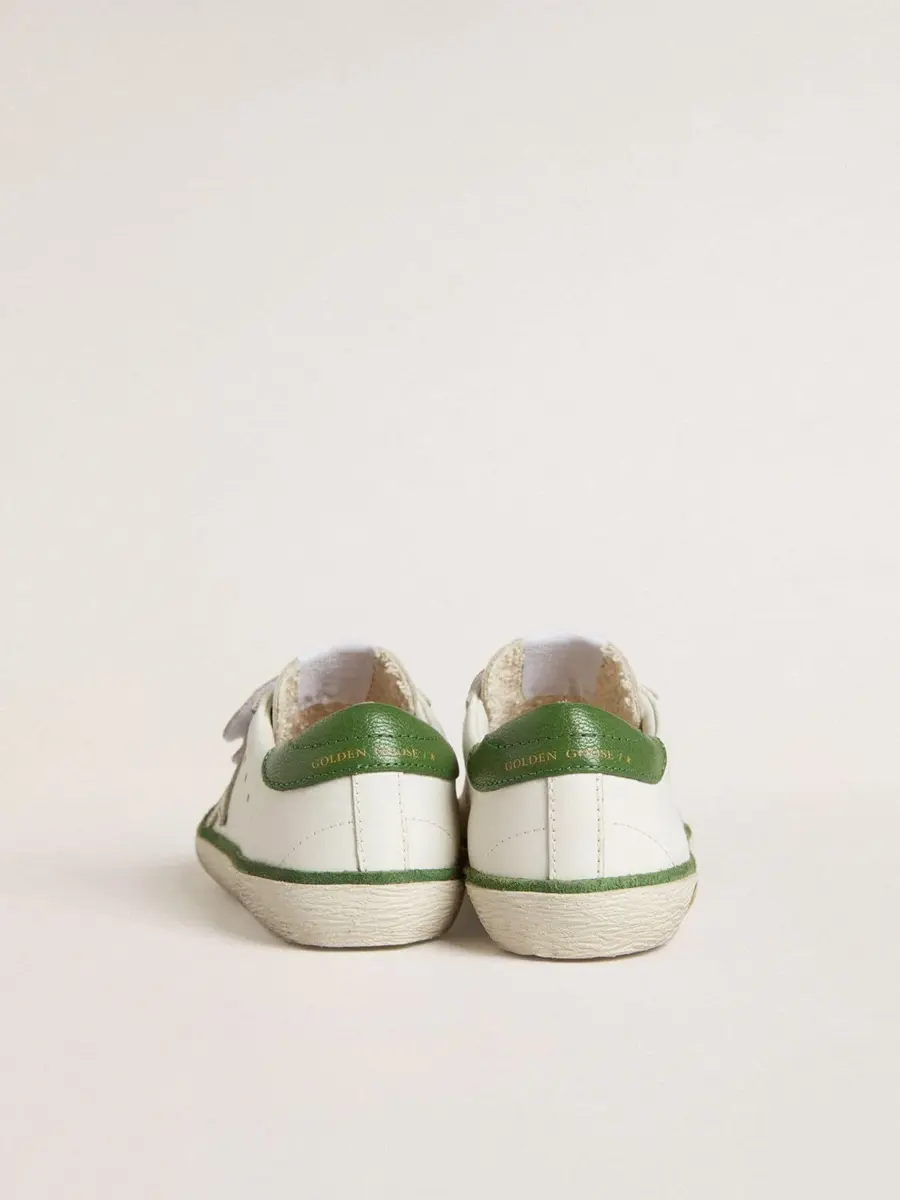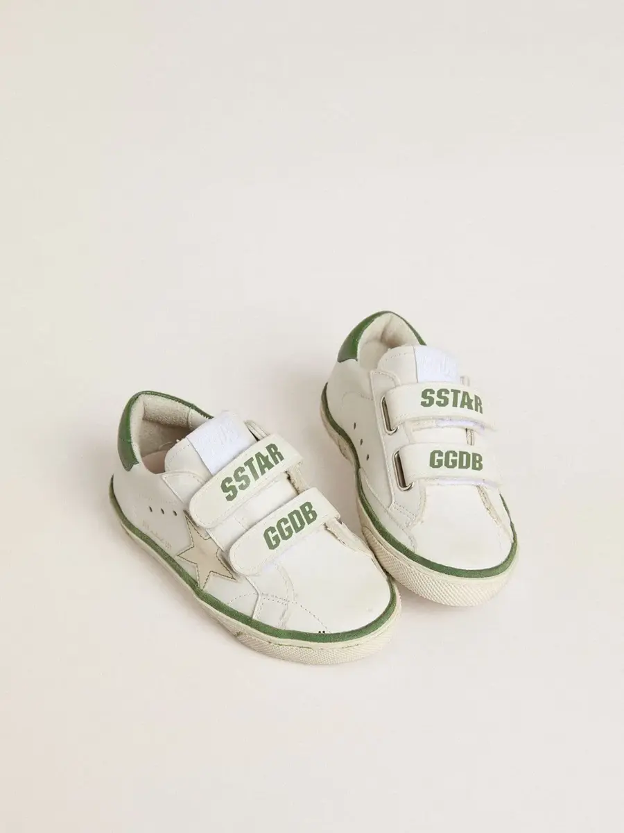 Teen Old School en piel blanca con lengüeta en el talón de napa verde e inserción verde