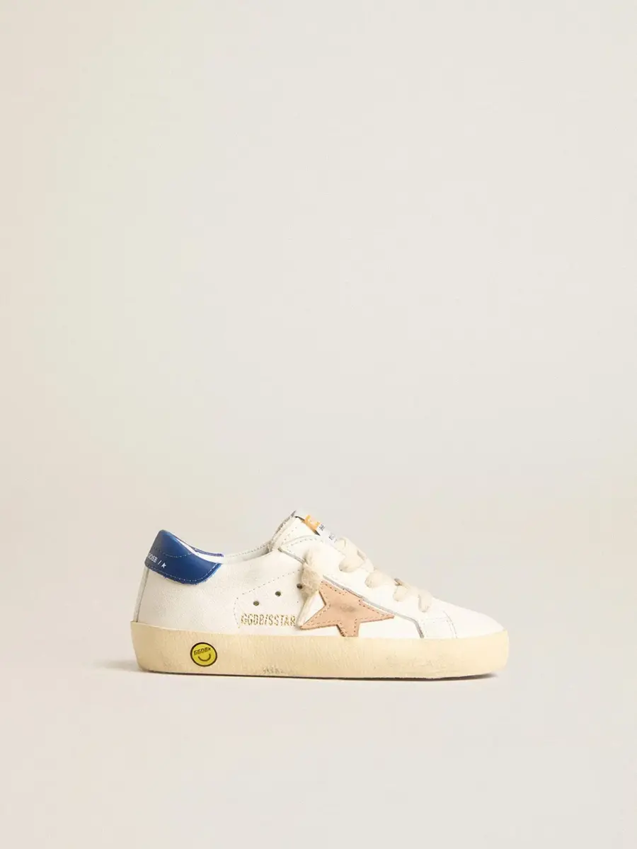 Un icono atemporal, pero en constante evolución. En Golden, nos encanta retocar nuestros clásicos y reelaborarlos constantemente, siempre desde un nuevo ángulo. Esta versión Junior de las Super-Star presenta una parte superior de piel napa blanca con una estrella de nubuck beige y una lengüeta azul en el talón. El detalle del smiley y los cordones de color crema añaden el toque final.
