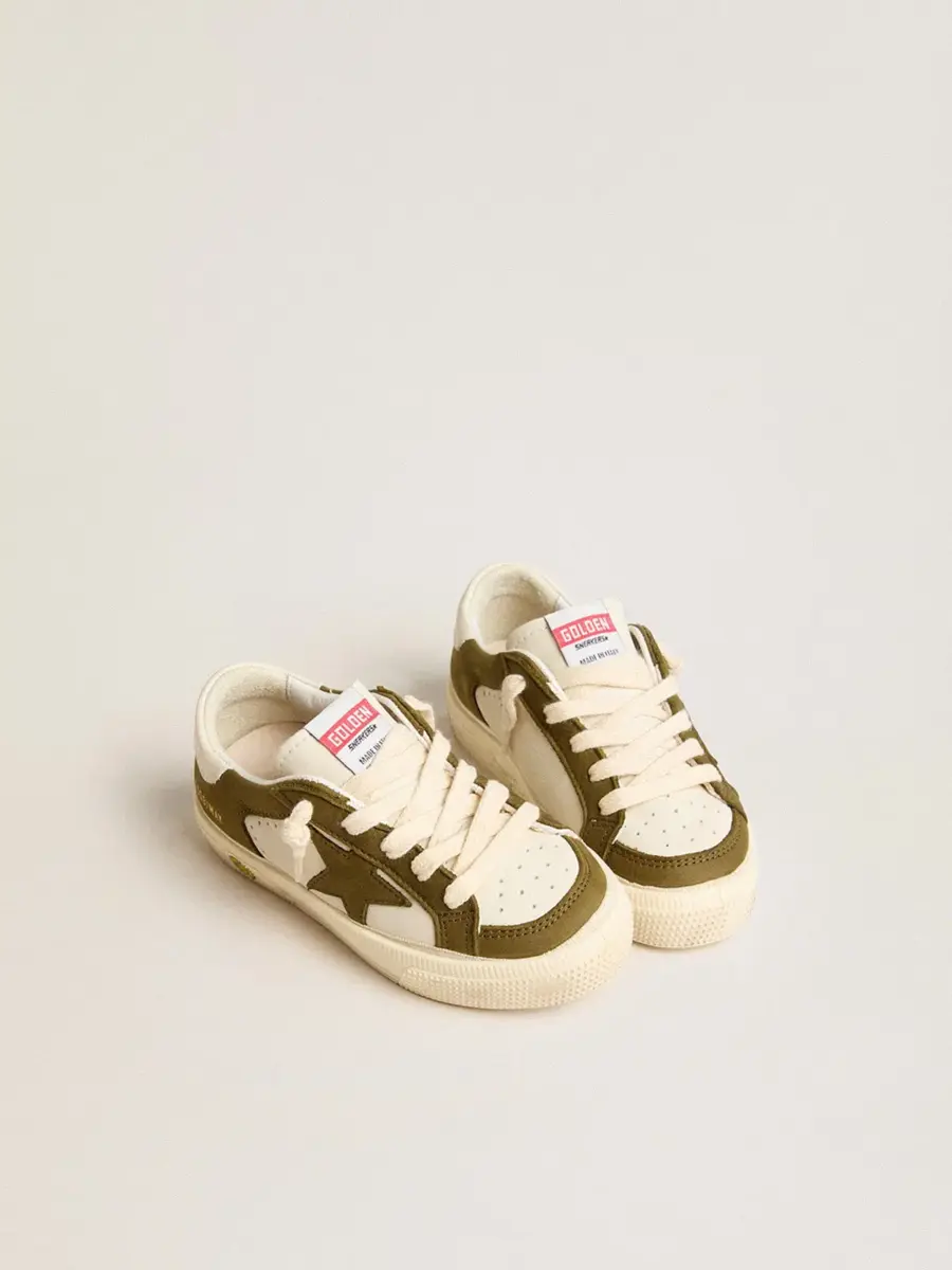 May Junior en cuero blanco y verde militar