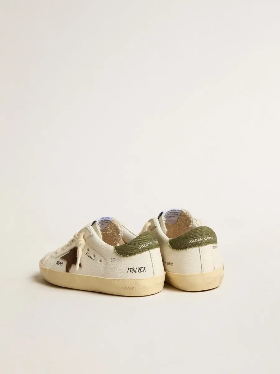 Super-Star Junior en napa con estrella de ante y lengüeta verde en el talón