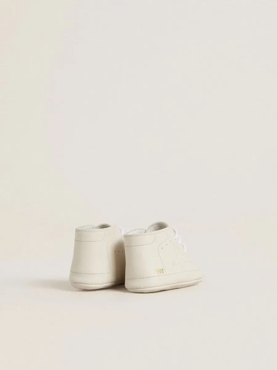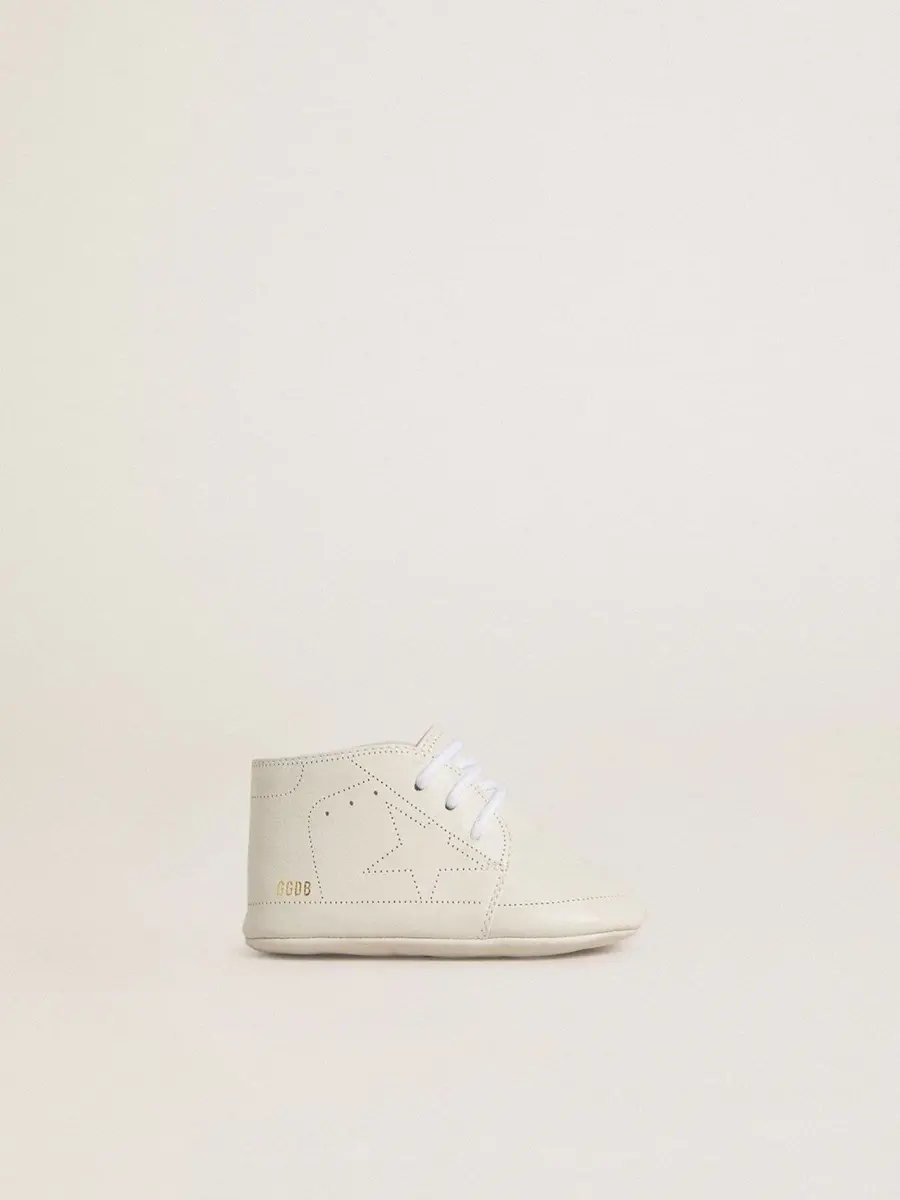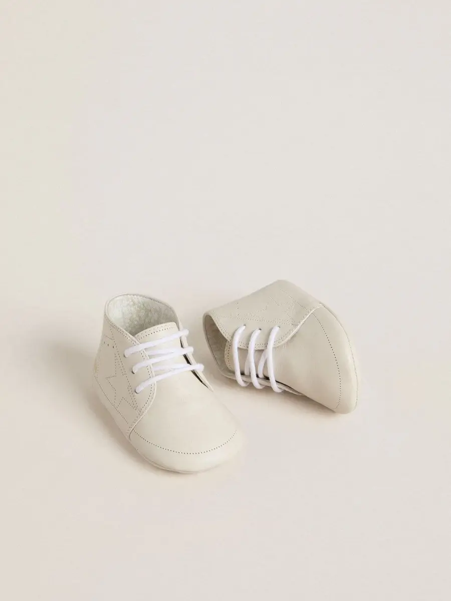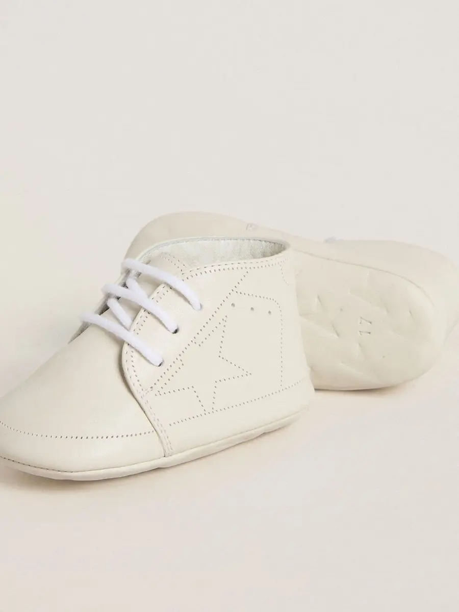 Zapatillas New Born en piel blanca con estrella perforada