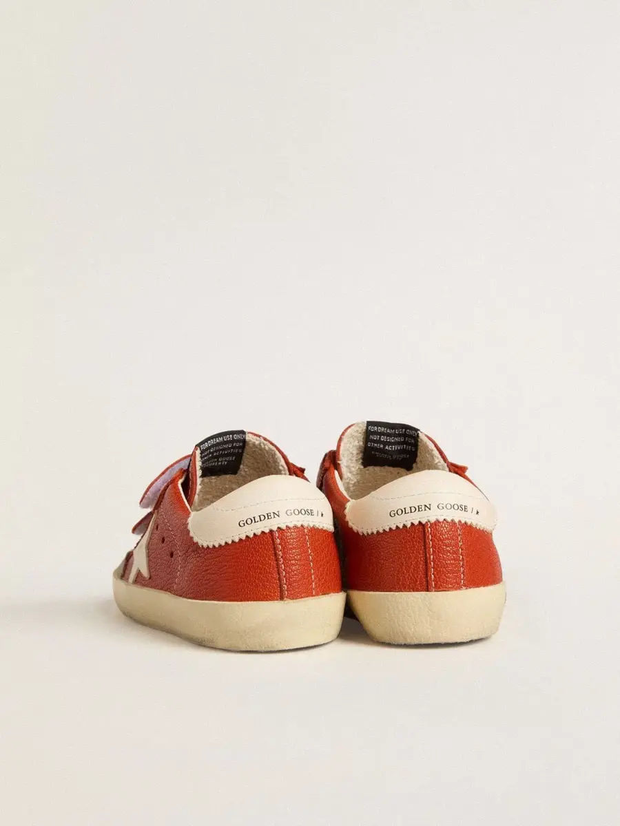 Young Old School en napa naranja con estrella blanca y lengüeta del talón en piel color crema.