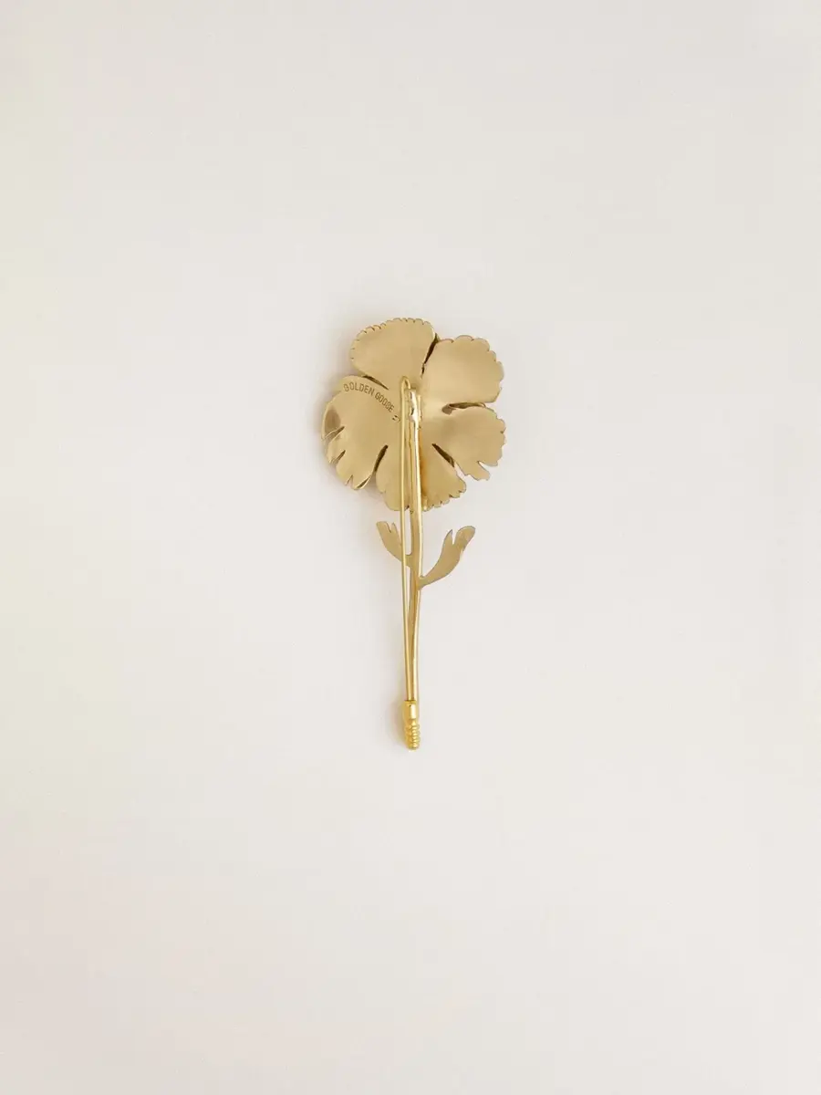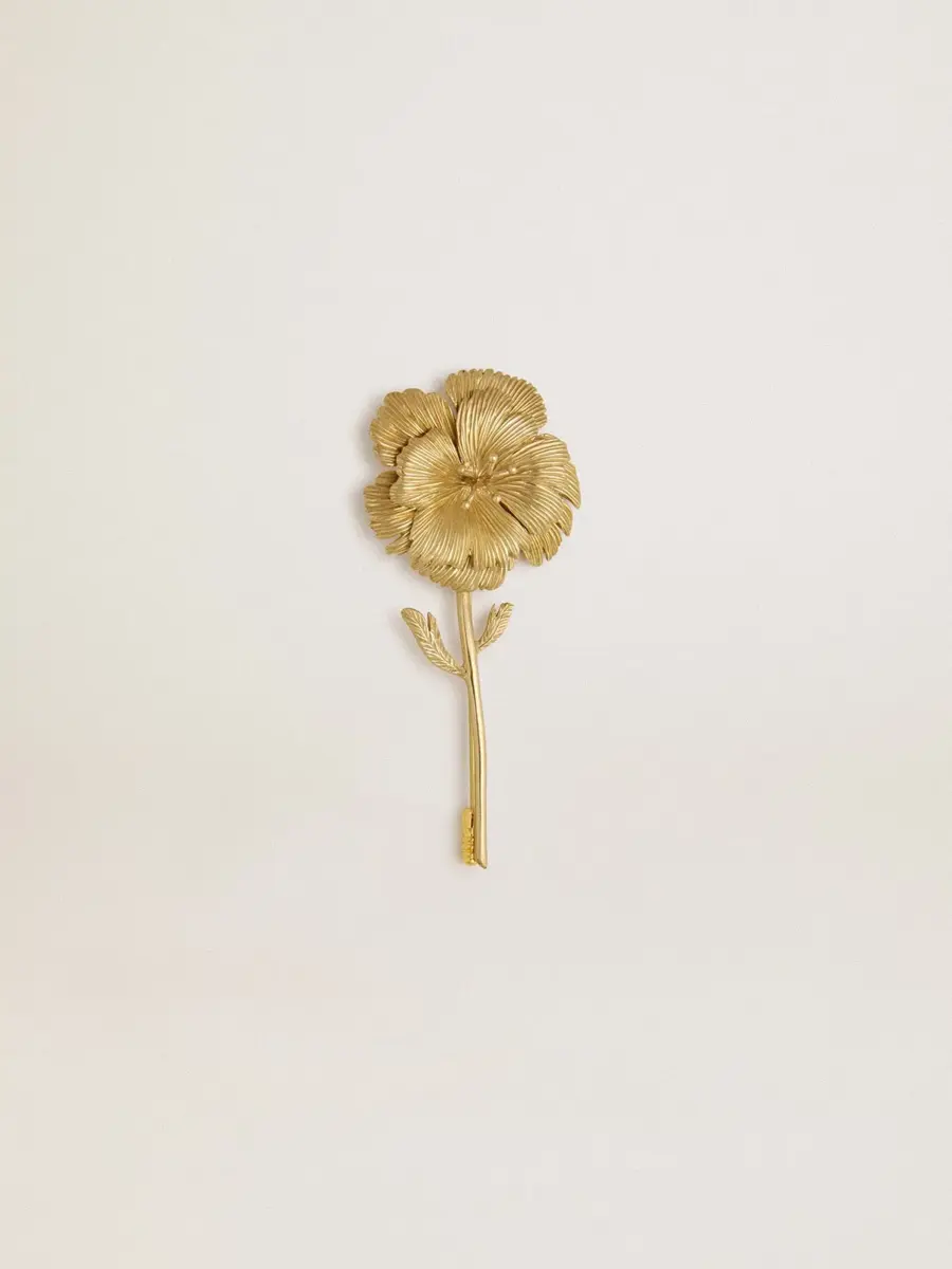 Tu historia se convierte en el accesorio más preciado para llevar contigo y tener siempre a mano. Este broche de latón dorado con diseño floral es el toque dorado que estabas buscando.